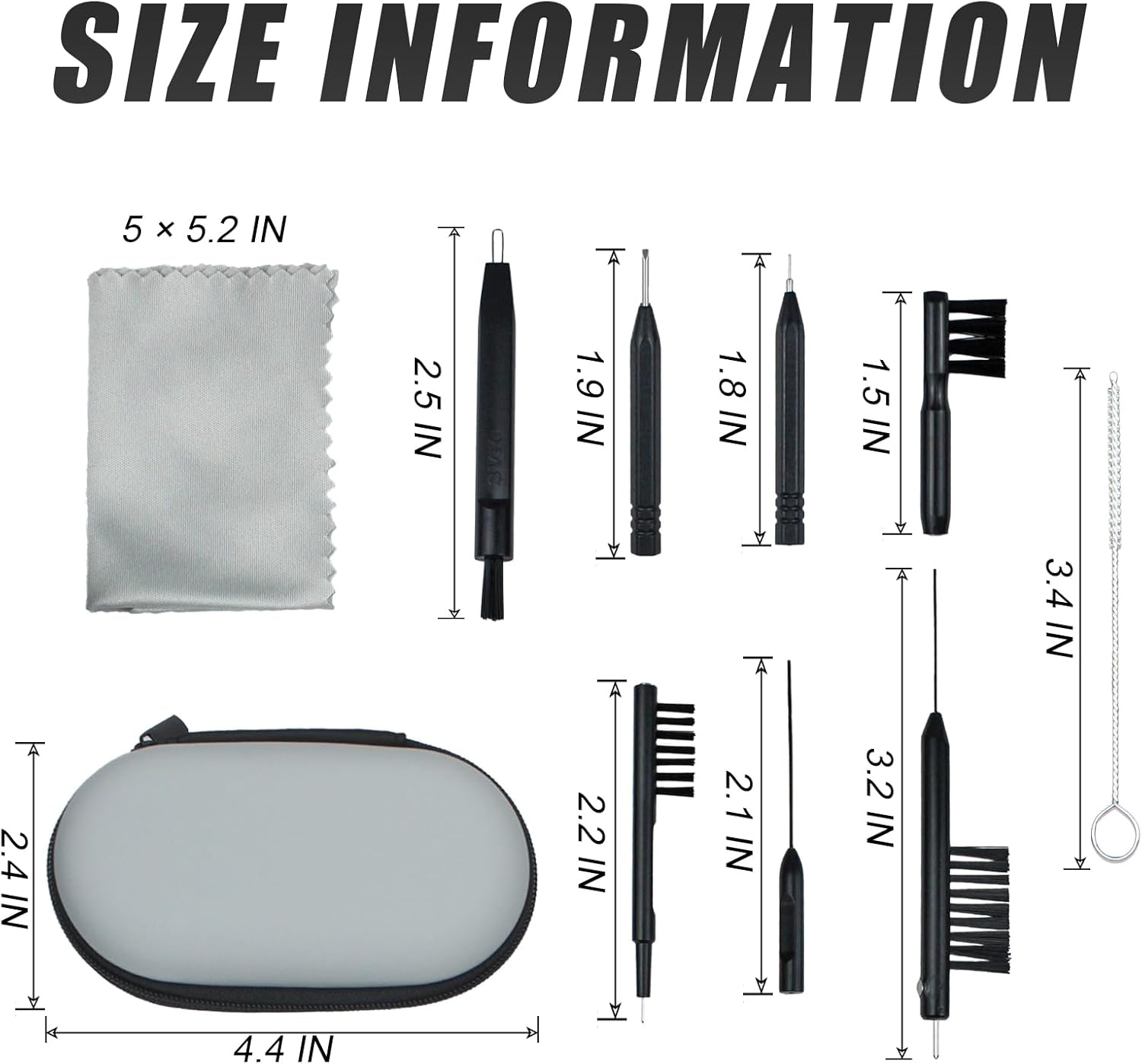 Including 4 different sizes of multifunction cleaning brush and screwdriver,1 pc cleaning cloth, 1 pc storage box.