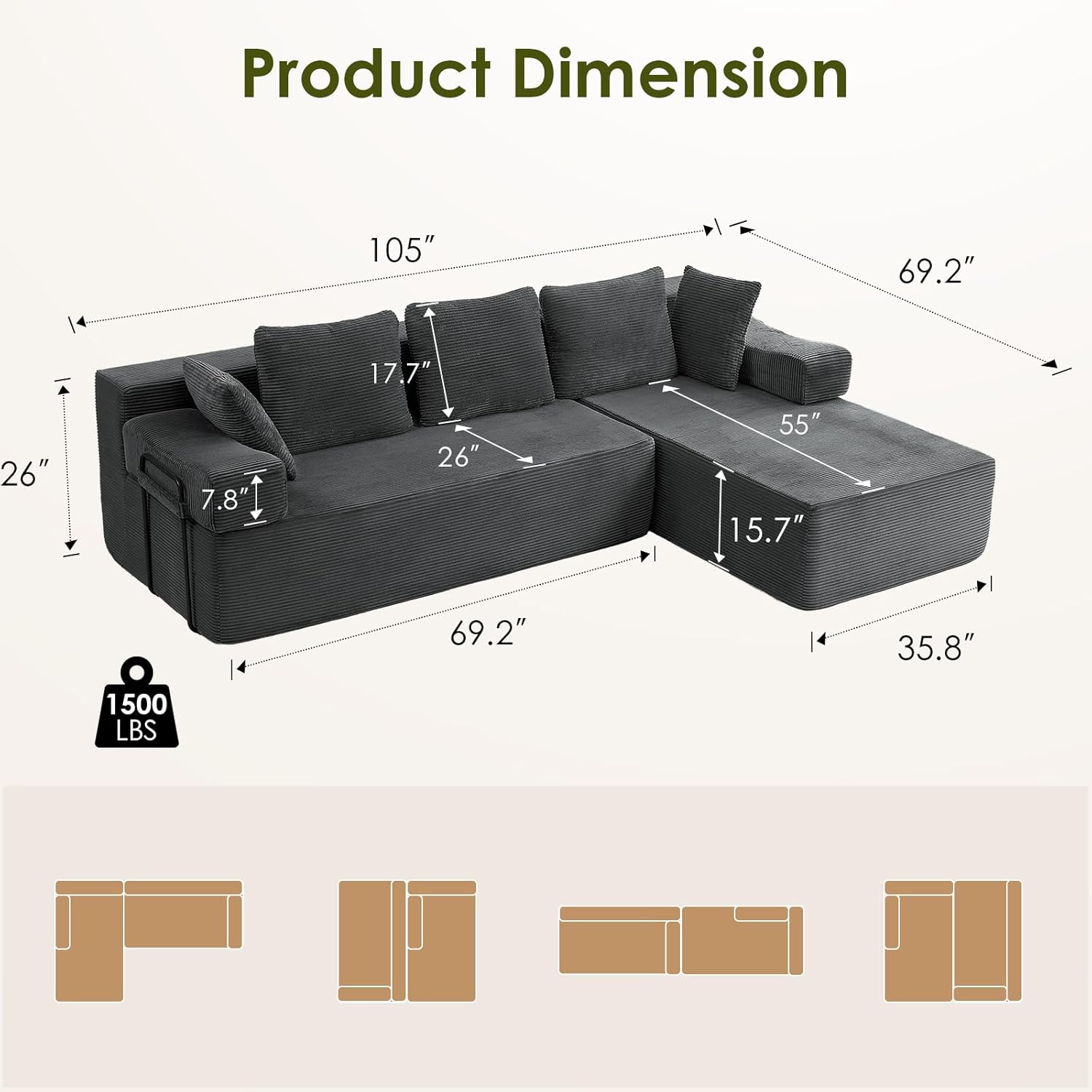 …, , , Home & Kitchen > Furniture > Living Room Furniture > Sofas & Couches, #LShaped #Modular #Sectional #Sofa #LShaped #Boneless #Couch #Cloud #Couches..,