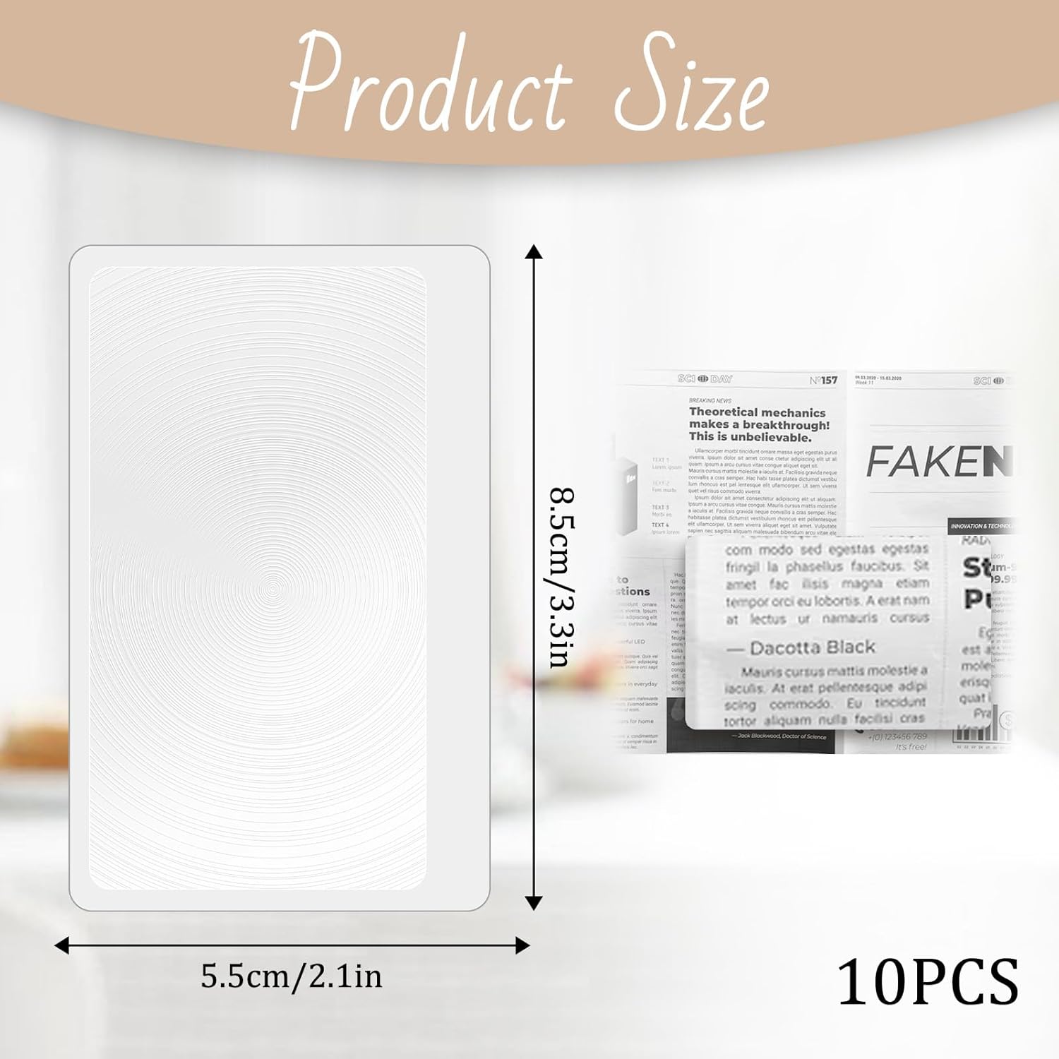 Review: Review of B0DYP63T71 – YQQYG 10PCS Fresnel Lens 3X Credit Card Size:When I saw these I immediately knew I needed one in my wallet. Since I’m over 40, I have presbyopia which means I cannot focus as near as I used to when younger. It’s funny that as we grow older, the restaurants we favor have dimmer lights and menus with tiny or fancy and difficult to read print. I often need reading glasses to be able to read the menu, and I frequently forget to bring my reading glasses when I go out to dine. Slipping one of these little cards in my wallet, I’m always prepared to deal with the most difficult to read menu (assuming I don’t forget my wallet, which would be a different problem).Maybe they eventually get too many scratches, but this package contains ten cards and they’re cheap to replace.