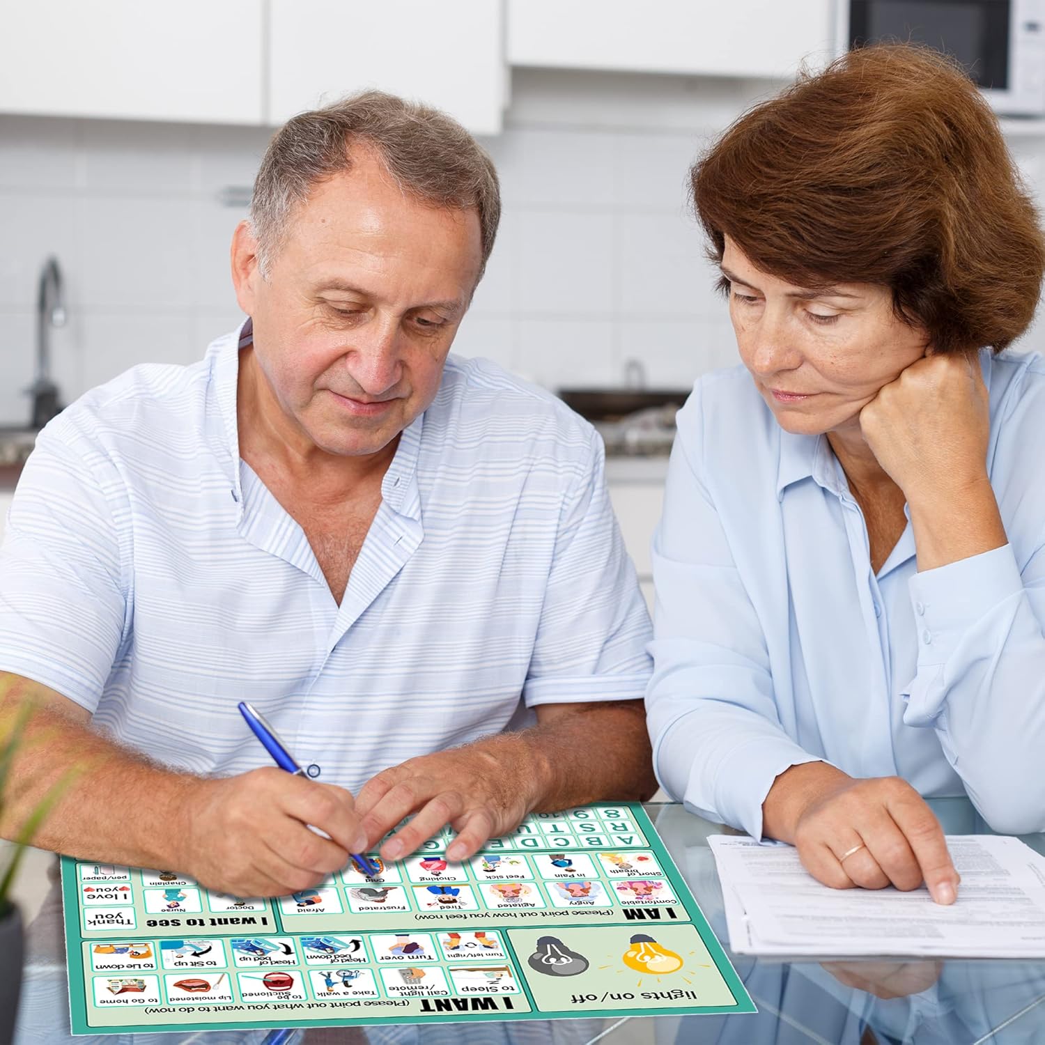 Review: I bought these for my dad when he was waking up from a coma still quite confused and then went to the tracheotomy so he couldn’t speak. He personally refused to use these but I did donate them to the nurses station because I didn’t understand I was getting a five pack. Anyway they are laminated durable and I would use them