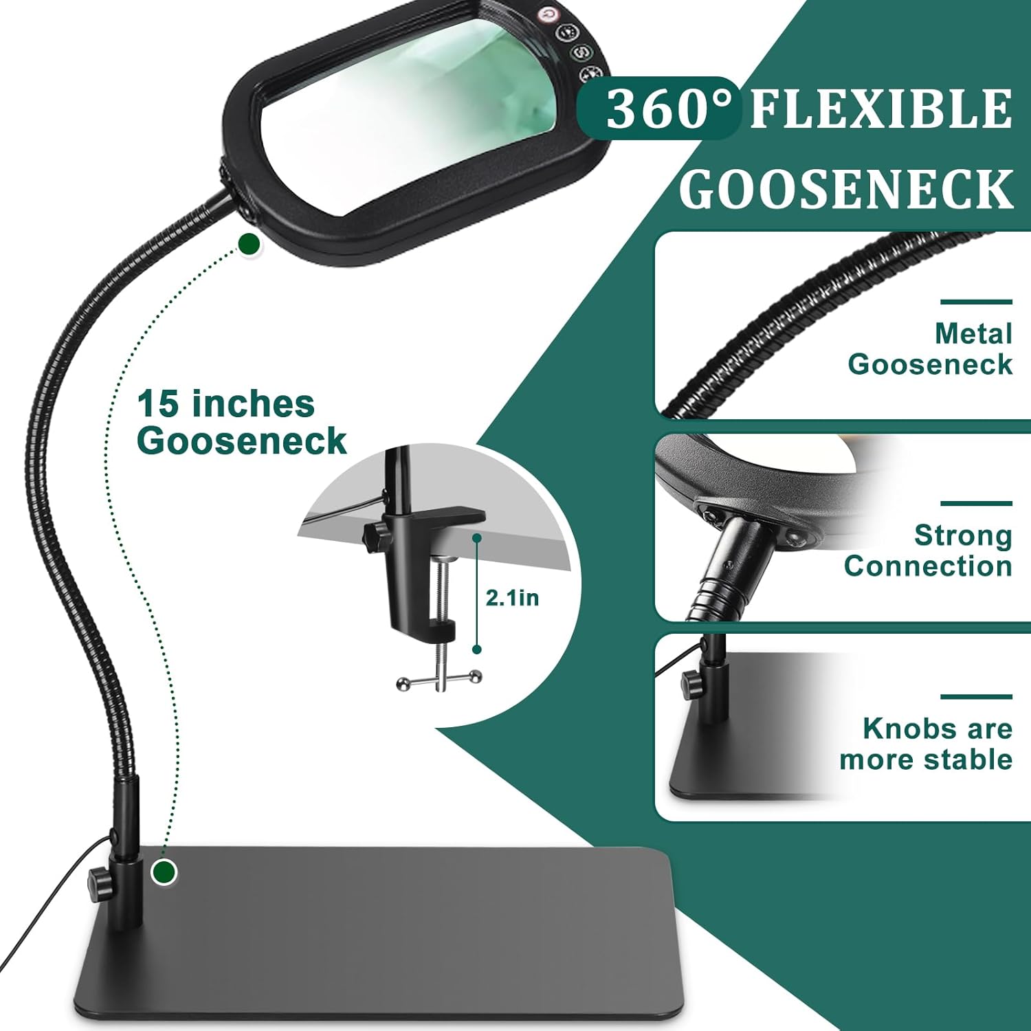 Review: The flexible gooseneck is a fantastic feature—I can position the light exactly where I need it, and it stays in place without drooping. The solid metal base is stable enough that I don’t worry about it tipping over, even when I’m working on a crowded table. I’m so glad I invested in this magnifier; it has truly enhanced my crafting experience, making it easier and much more enjoyable to work on detailed projects!