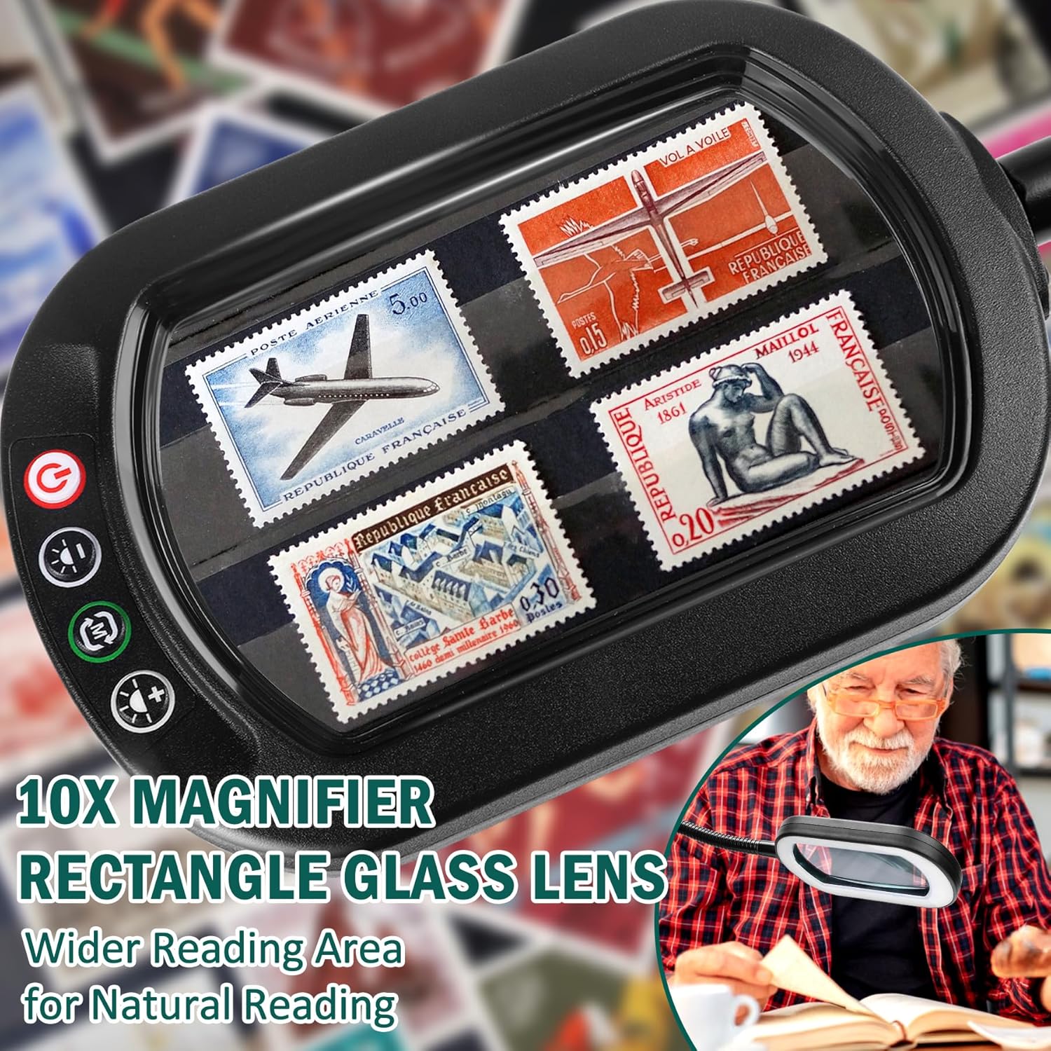 , Health & Household > Medical Supplies & Equipment > Mobility & Daily Living Aids > Visual Impairment Aids > Magnifiers, #10X #Rectangle #Magnifying #Glass #Light #Stand #Color #Modes #Stepless #Dimm..,