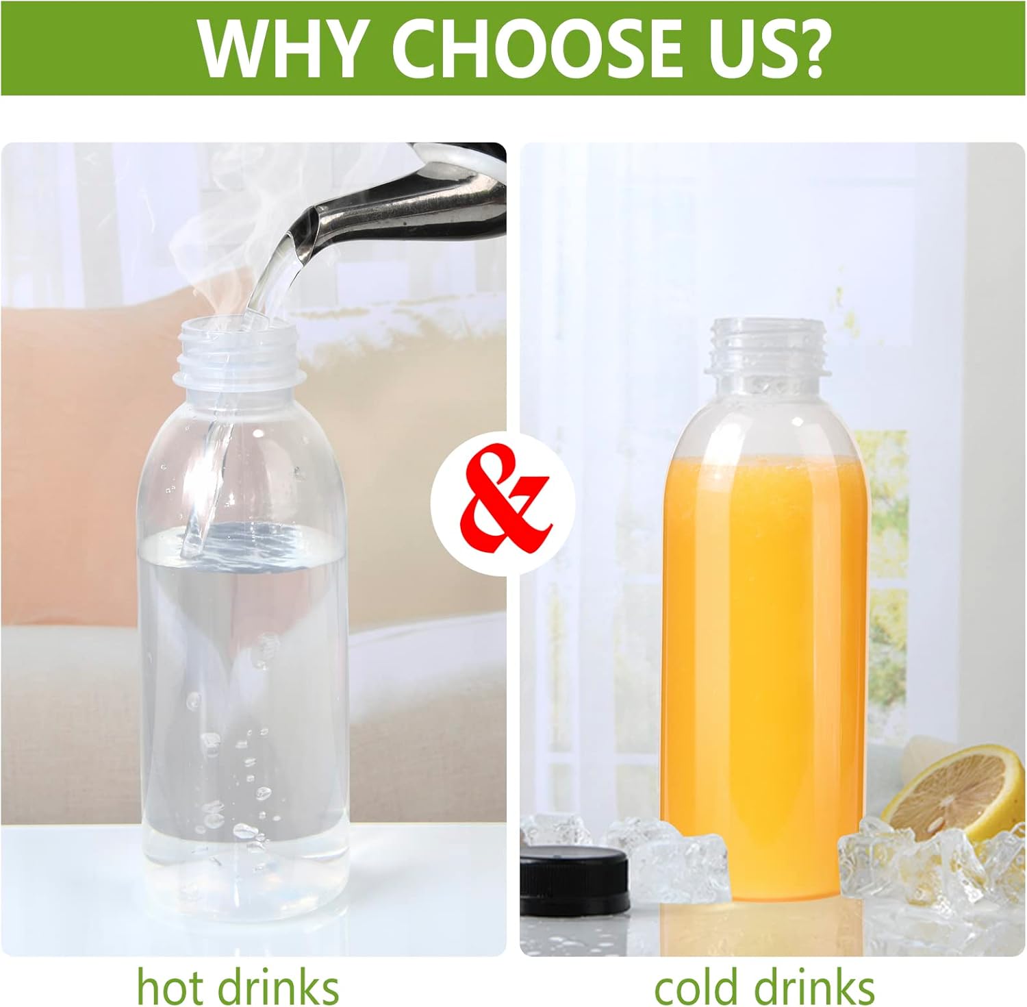 These plastic beverage bottles are ideal for daily life, juice stores, takeout restaurants, carnivals, bars, picnics, or catering events. Perfect smoothies bottles for storing juice, milk, shakes, iced coffee, fresh juices, water, or any other homemade beverage