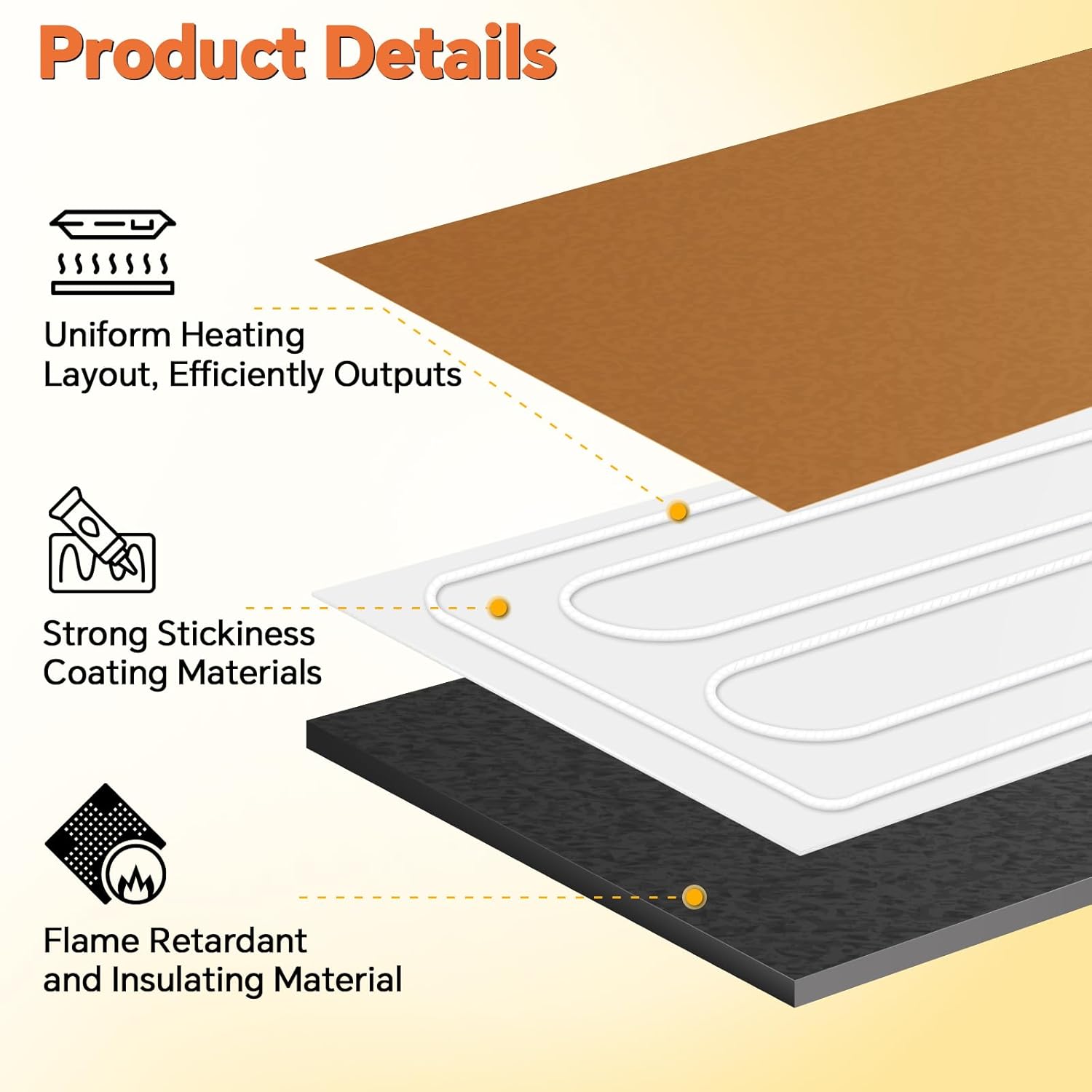 High Efficiency: The tank heater pad distinguishes itself with minimal power consumption yet delivers remarkable heating performance, thanks to its advanced heating module that boasts accelerated heating speeds and ensures uniform, efficient heat distribution