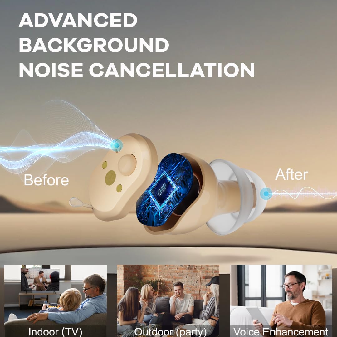 Review: I have to say that these hearing aids are super comfortable to wear. They are so small and lightweight that I barely even notice them in my ears. The design is really sleek and virtually invisible, which means no one even knows I’m wearing them! This is a big deal for me because I don’t want to feel embarrassed about wearing hearing aids. These are so discreet that they fit perfectly into my ear canal without sticking out or drawing attention. Plus, the design is ergonomic, so they stay securely in place without falling out, even if I’m moving around a lot. I’ve worn them for hours at a time, and they never feel uncomfortable.Another feature I absolutely love is the background noise cancellation. I’ve always had trouble hearing clearly in noisy environments, like at work or family gatherings, but these hearing aids have totally solved that problem. It cancels out background noise and feedback, which used to be a big problem for me. For example, when I’m at a restaurant or in a group conversation, I can hear people clearly, even when there’s a lot of noise around me. It’s like the hearing aids just know how to focus on what I want to hear.When I’m in a conversation with multiple people, these hearing aids automatically adjust to track the location of each person’s voice. This makes it much easier to follow along with the conversation, even if people are talking at the same time. I can hear everyone clearly without having to ask them to repeat themselves. This has made group discussions way more enjoyable.One of my favorite parts is how easy they are to control. The hearing aids have a one-button control system, which is super simple to use. To switch between modes, I just long-press the button, and to adjust the volume, I short-press it. There are four volume levels, so I can easily find the perfect setting for any situation. Plus, the hearing aids remember the mode I last used, so I don’t have to keep changing settings every time I put them in. They are easy to use, comfortable, and effective at cancelling out noise, I highly recommend these.