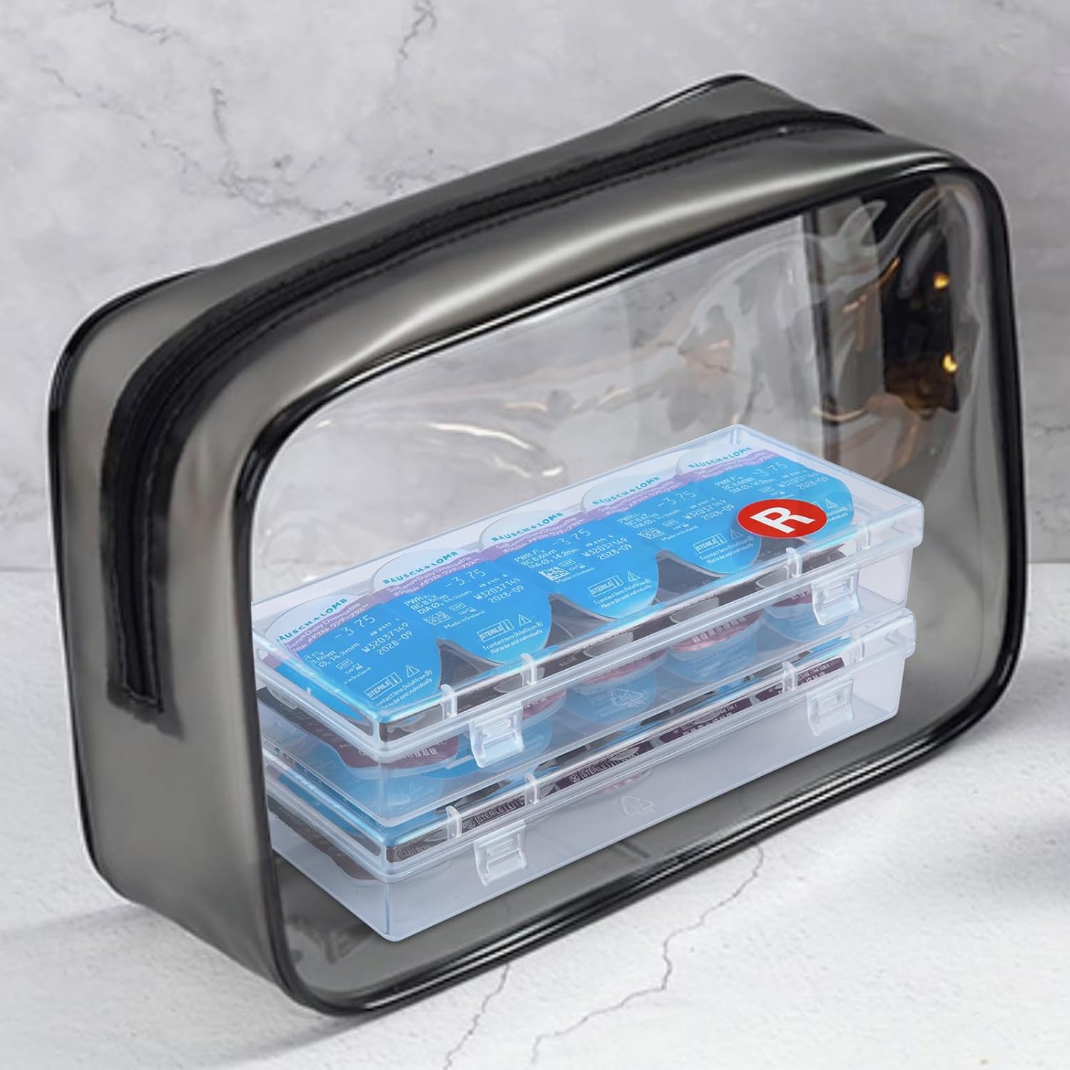 The left and right contact lenses are placed in different and storage boxes, and the left and right boxes are labeled with different colors to make it easier to distinguishMade of PP material, waterproof and dustproofWith two buckles, it is not easy to loosen and is more secure