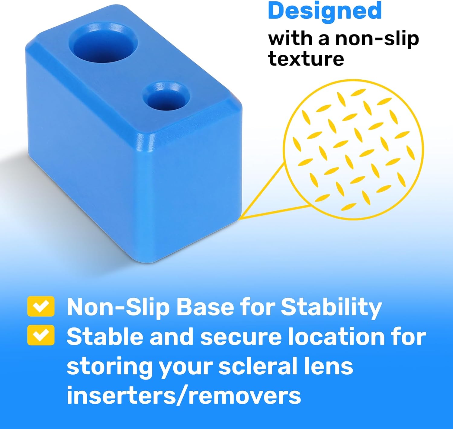 B0DDM512TN,  This 2-pack of scleral lens handler holders includes two holders to store your contact lens applicators, perfect for keeping one at home and one for travel. Each pack includes one ventless contact lens aid, providing secure storage for applicators used with hard/RGP lenses and prosthetic eyes.