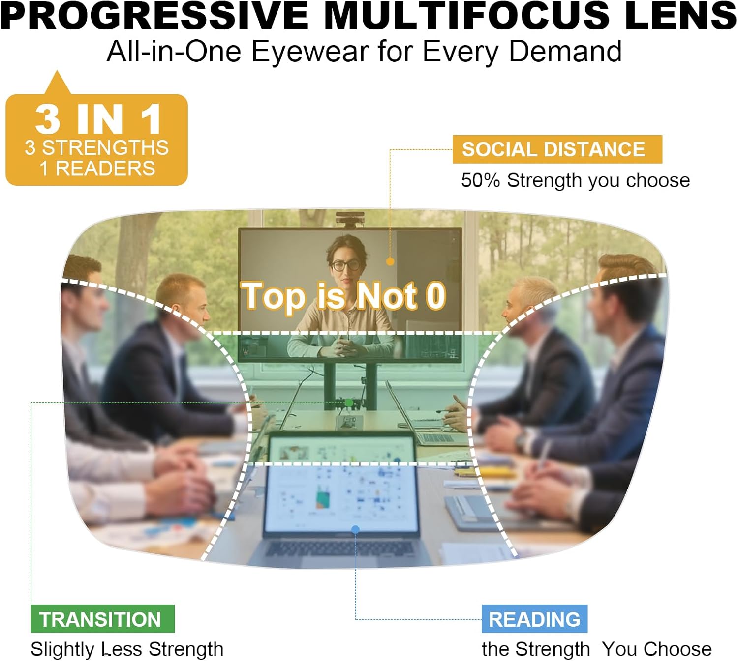 Review: Those progressives glasses are amazing, they fit perfectly my face and I can see crystal clear in all focal, long distance, medium distance and close range reading, I strongly recommend! Best of the best.