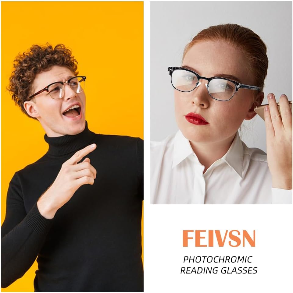 B0DC9XQVQH, FEIVSN photochromic reading glasses are ideal for all-day wear, with UV400 protection as the lenses quickly and automatically darken when exposed to UV rays. Once you are indoors or at night, the lenses will remain colorless and clear. The full precisely magnified reading area is perfect for reading small print/writing/eating comfortably and other close-up activities. With FEIVSN photochromic full lens reading sunglasses eyeglasses, you can work/read comfortably on your balcony or in your yard with clear views of near and far in the sun.