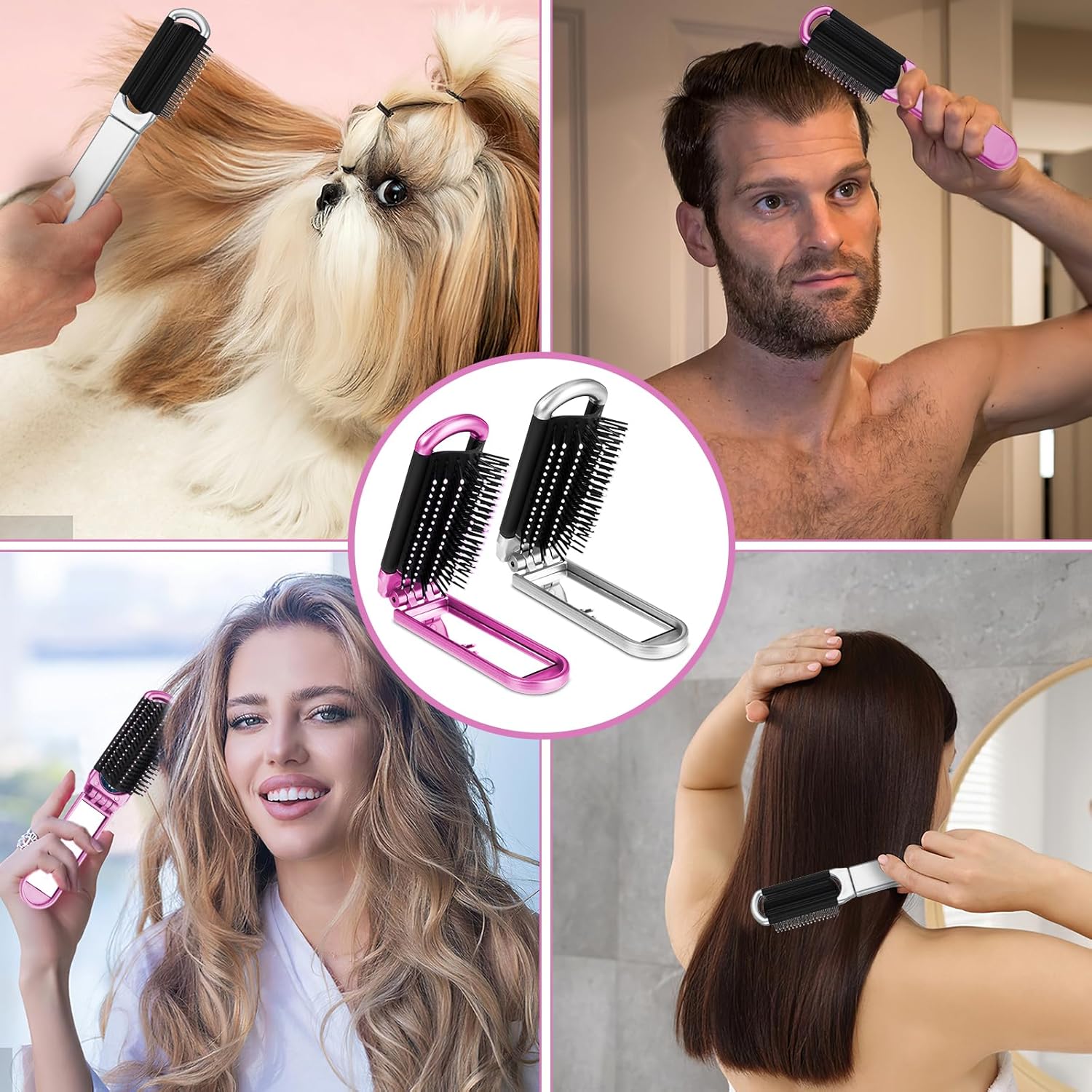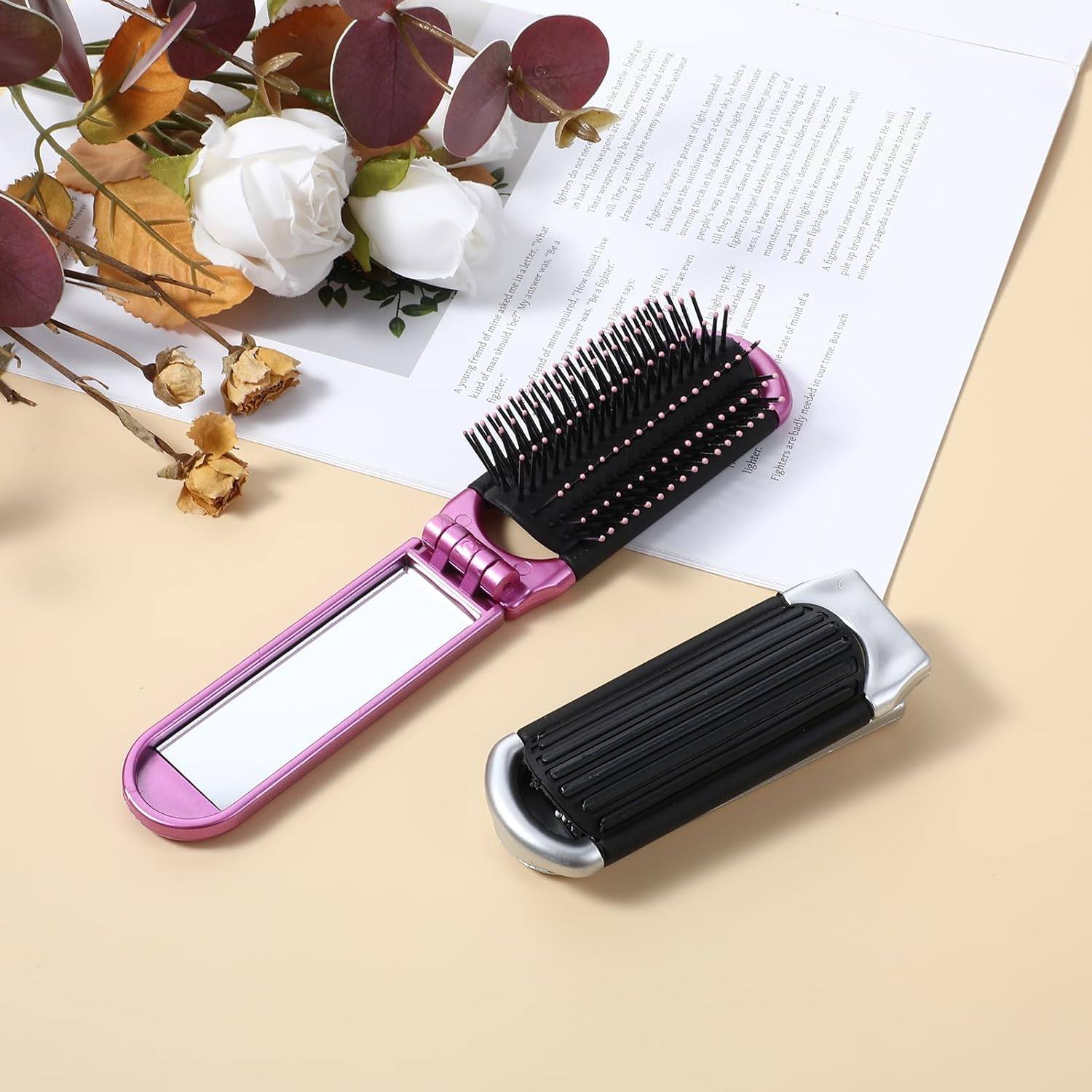 2 Pack Travel Hair Brush with Mirror,Folding Hair Brush Trav…