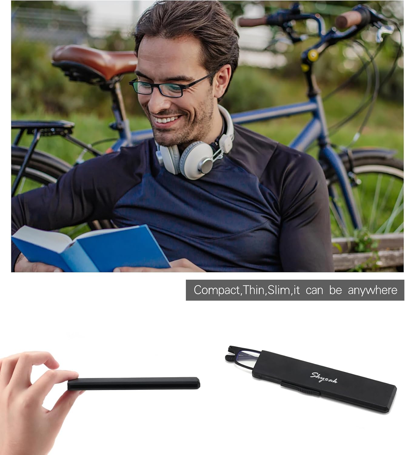Review: After cataract surgery, had to wear ‘readers’ to see up close. These glasses fold completely flat and slide into the tiny, thin case so they take up little space in my purse and are available in a few seconds. Love them and highly recommend!