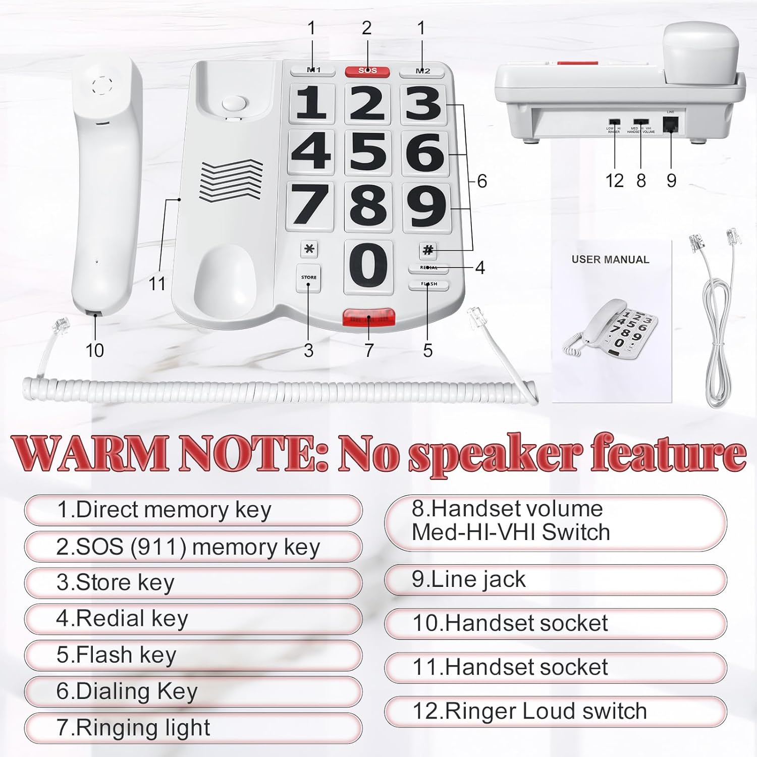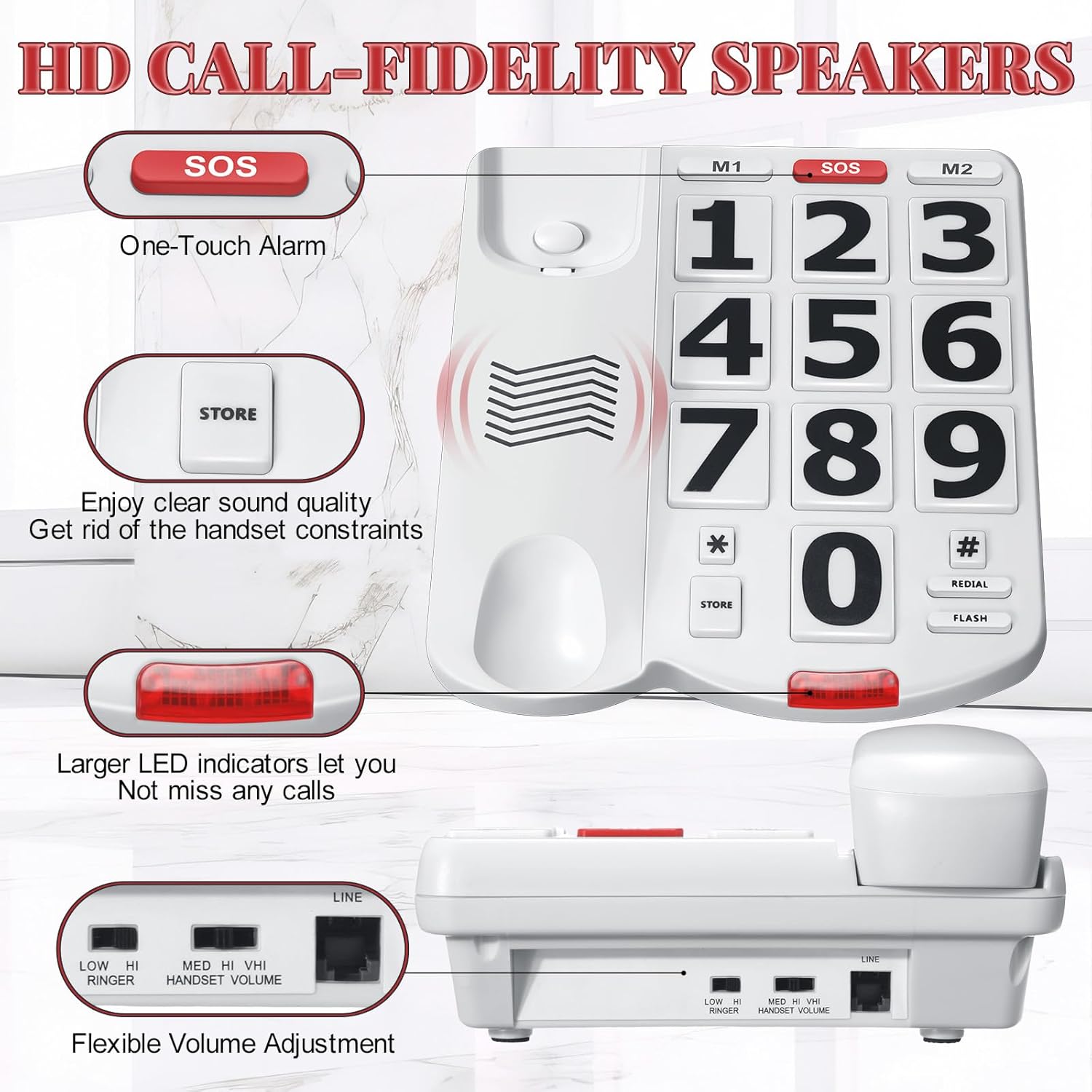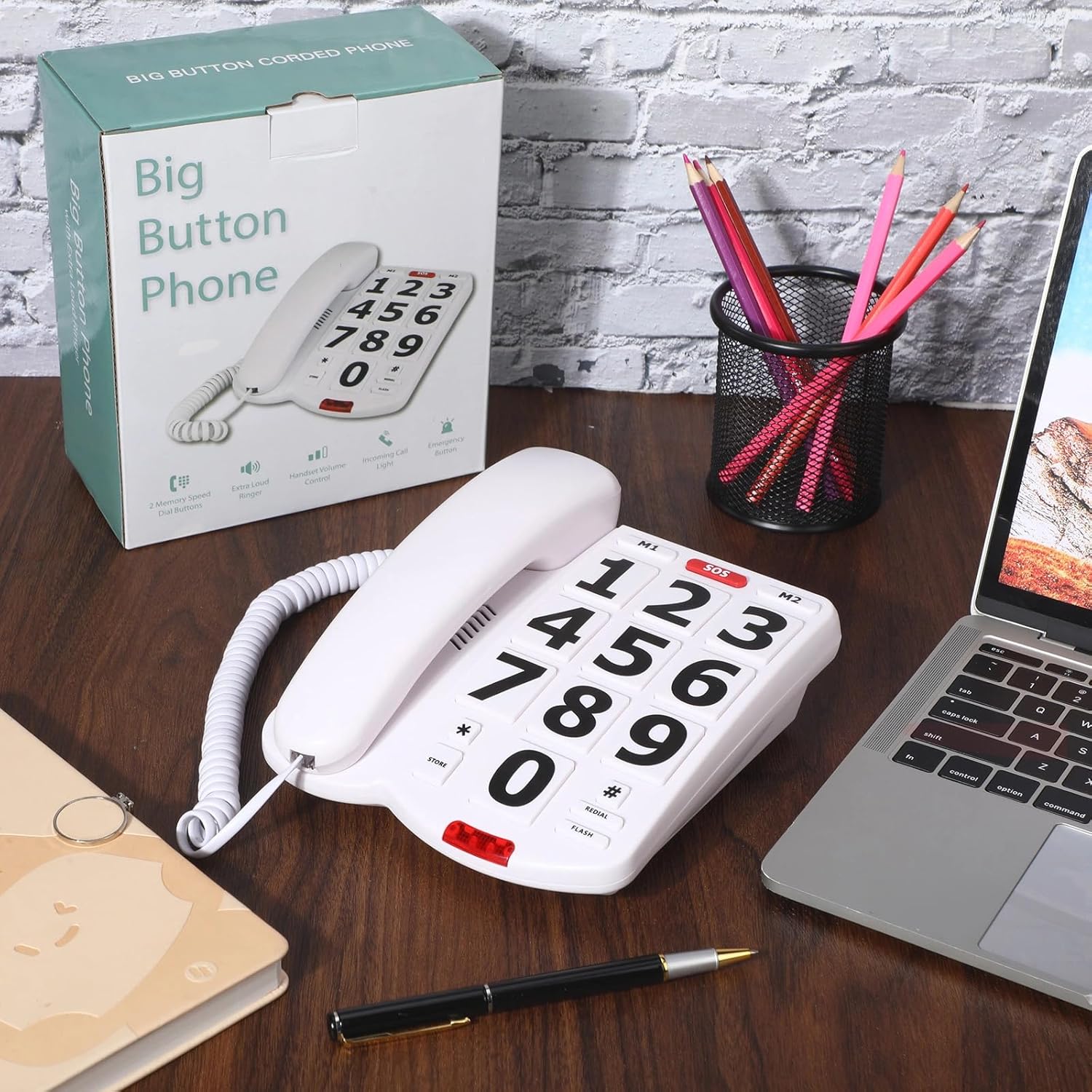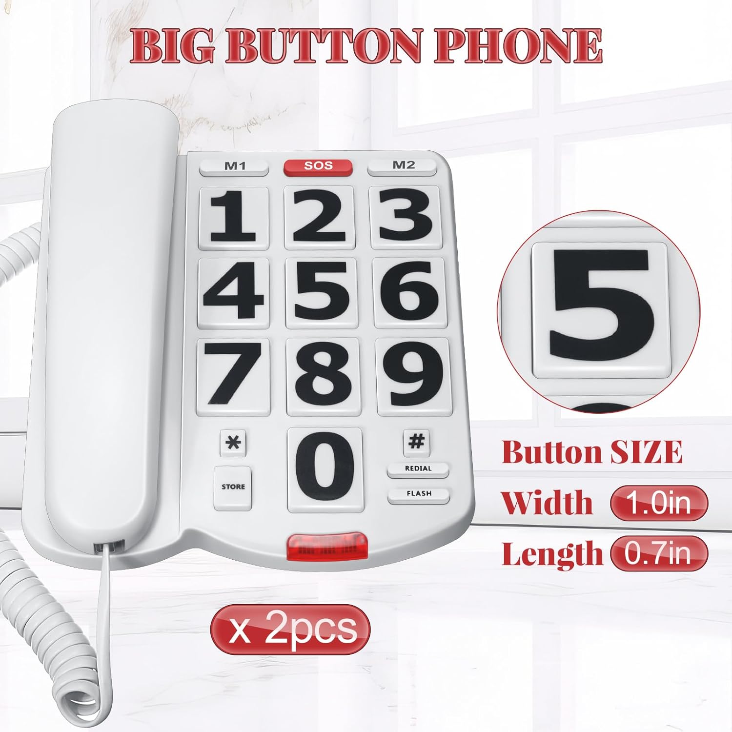 , Health & Household > Medical Supplies & Equipment > Mobility & Daily Living Aids > Visual Impairment Aids > Big Button & Amplified Telephones, #Pcs #Big #Button #Phone #Seniors #Corded #Landline #Telephone #Touch #Dialling,