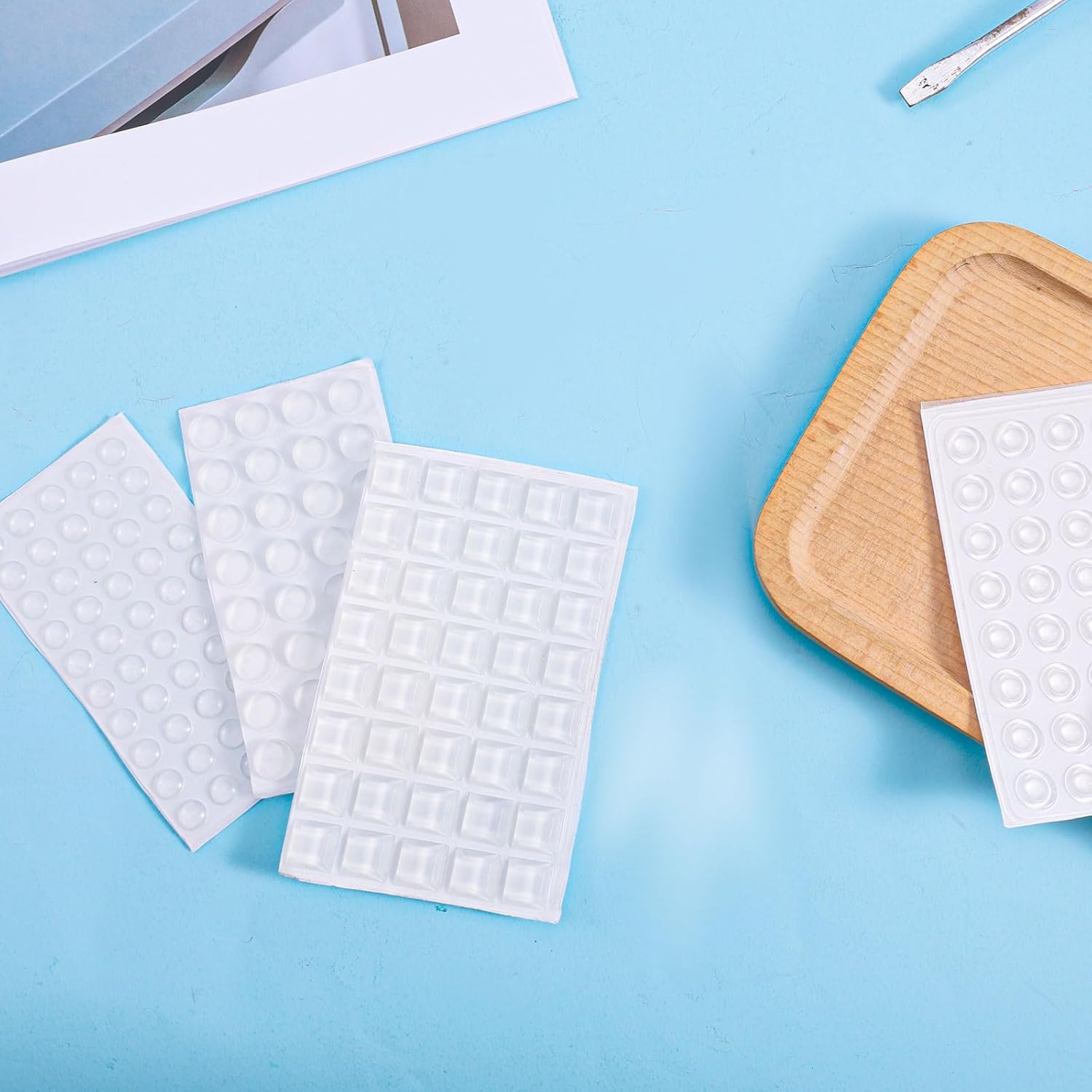 Review: These are really smooth and have a very nice feel. The quantity and variety of sizes is excellent. The adhesive is sticky enough to hold its’ position but light enough that these can be relocated if necessary. While the primary use for these is for the visually impaired there are also alternative uses. For example I have a door handle that was bumping against a cabinet. I place one of these on both the cabinet and on the proper spot on the door handle which solved the problem.