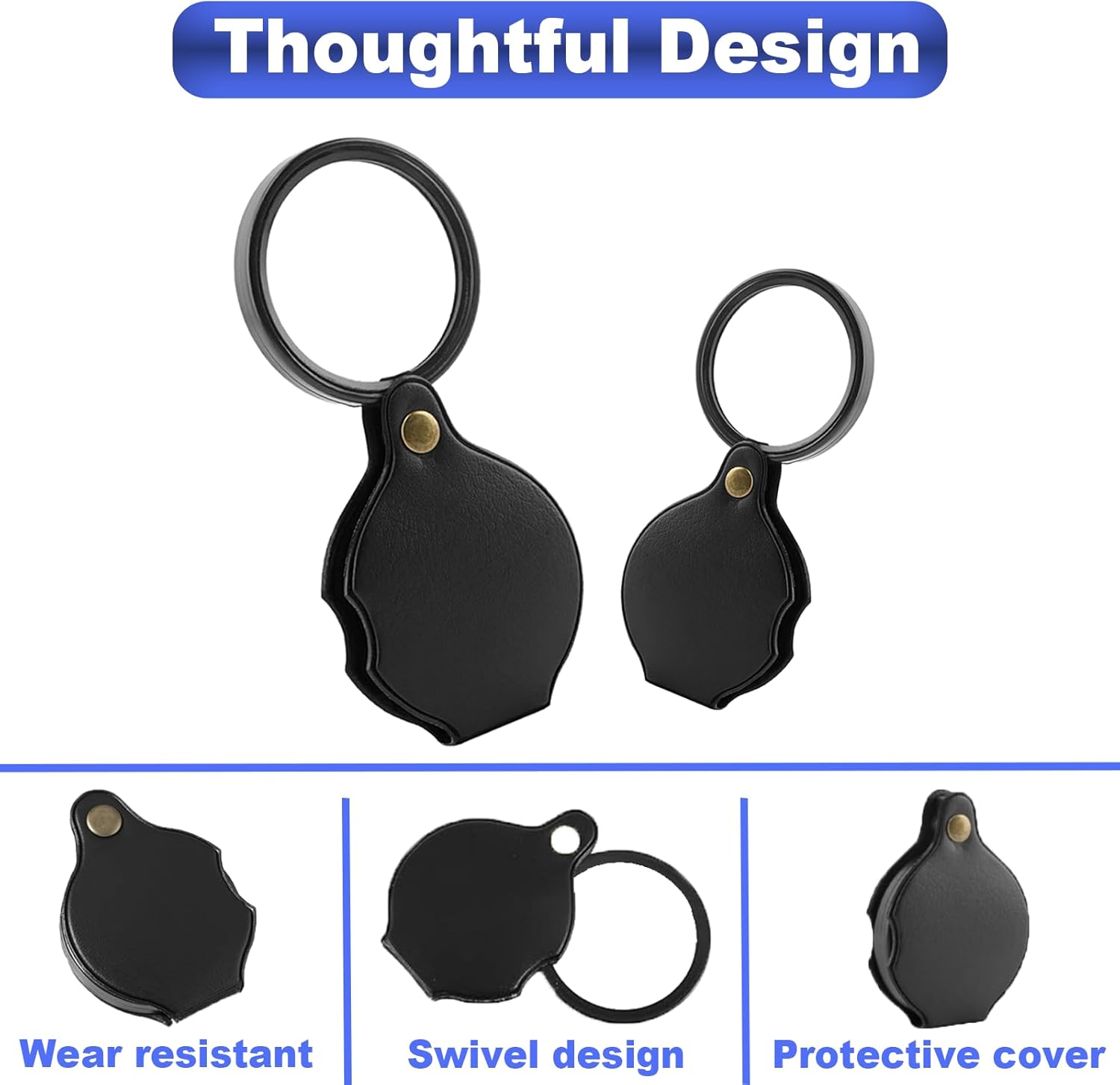 Review: Well this is a little bigger than I thought it would be it works like a champ. I took a picture next to my debit card so you would have a good idea of the size. I don’t know what has happened to my vision but I just have a heck of a time seeing anything at all with small print. I have used this in the kitchen to read cooking directions, I have used it on shampoo bottles to read the ingredients, I throw it in my purse and pull it out anytime I need to read small print. It magnifies amazingly. You could put it on your keychain but like I said it’s just a little bigger than I anticipated it being. Tossing it in your purse or bag is the way to go. You get two! One for home and one for on the go. And inexpensive alternative to those progressive or bifocal glasses that your eye doctor thinks you need. One of them is on my nightstand, the other one truly is in my purse and I’ve used it at the grocery store countless times.If you struggle reading small print then hit the order button. You can hold it in one hand, you can hook your finger through the plastic case and still have the use of both of your hands so it doesn’t get in the way. I’m quite happy with this.