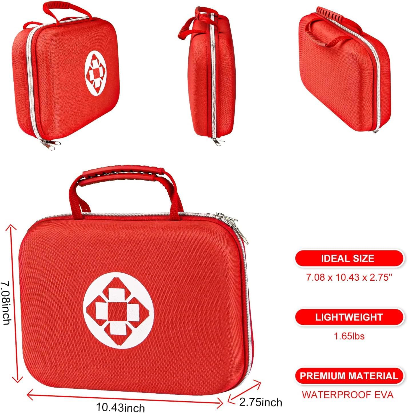 Portable First Aid Bag: The mini camping essentials first aid kit does not take up a lot of space and can give a sense of security. First Aid Set with multi-purpose emergency survival tools & all-purpose highest standard trauma supplies. Complete first-aid kits with bright red bag, you can quickly find everything you need in case of any emergency. Home/car/travel first aid kits also is a great choice!