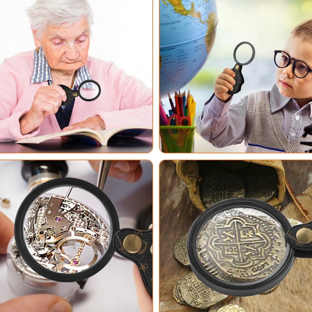 【ROTATING FOLDING】The magnifier supports 360 degree rotation, easily folds into the black protective cover. The cover can protect the lens from scratches and damage.Folds into protective padded sleeve. Fits in your pocket or bag.