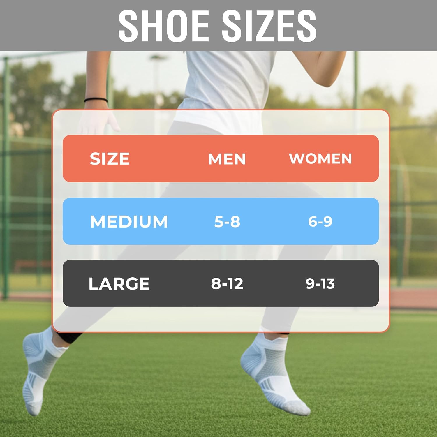 Review: I wear a women’s size 9.5-10 shoe, and these socks were large on my feet. I have to do some adjustments to make them fit better, but the toe fabric still sticks out. Maybe it’s extra toe padding. 🤣These socks do offer a fair amount of compression, so they at least stay in place all day. There also is a light padding that is comfortable.