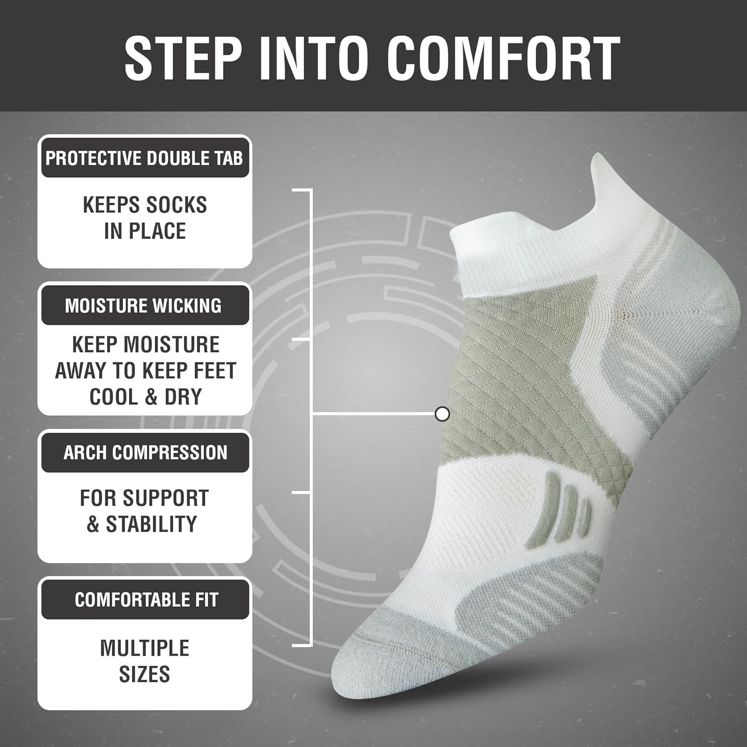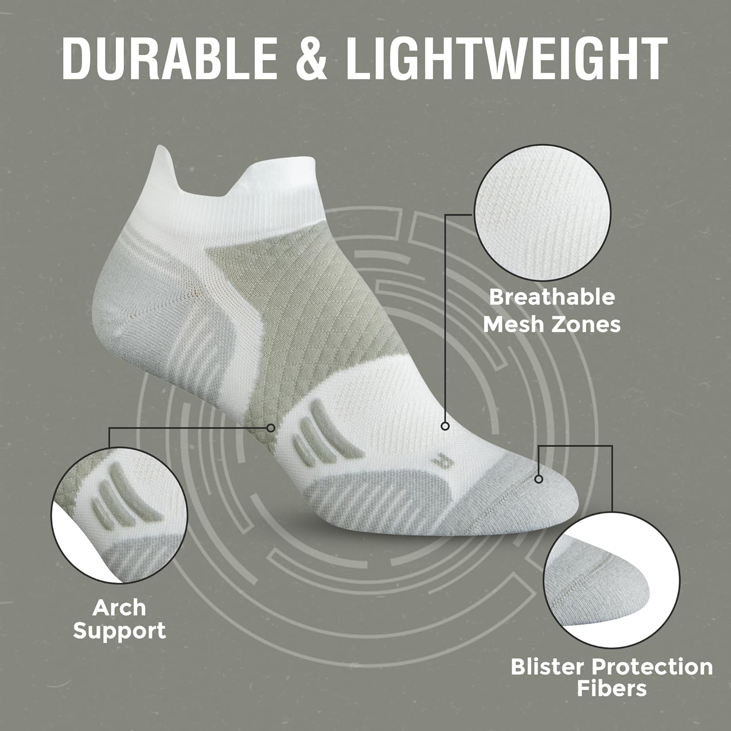 Title: Thin ankle length socks with protective tabs for physical activities