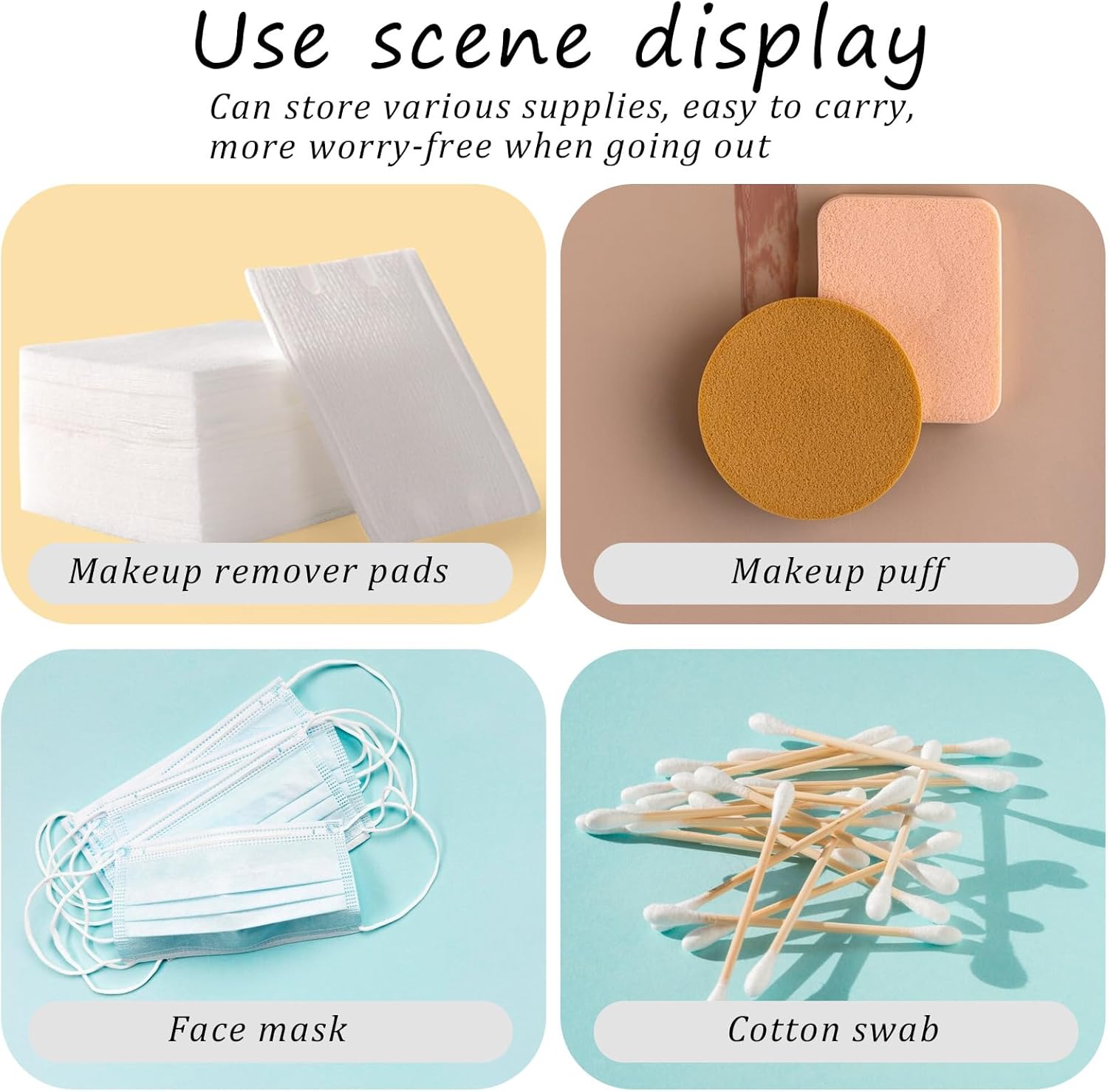【Product Size】The length of cotton pad organizer is 4.45 inches, the width is 3.54 inches, and the height is 1.14 inches. Cotton swab travel case is of moderate size, floss holder container is very suitable for packing some personal items, and mini box can accommodate multiple cotton swabs and cotton balls.