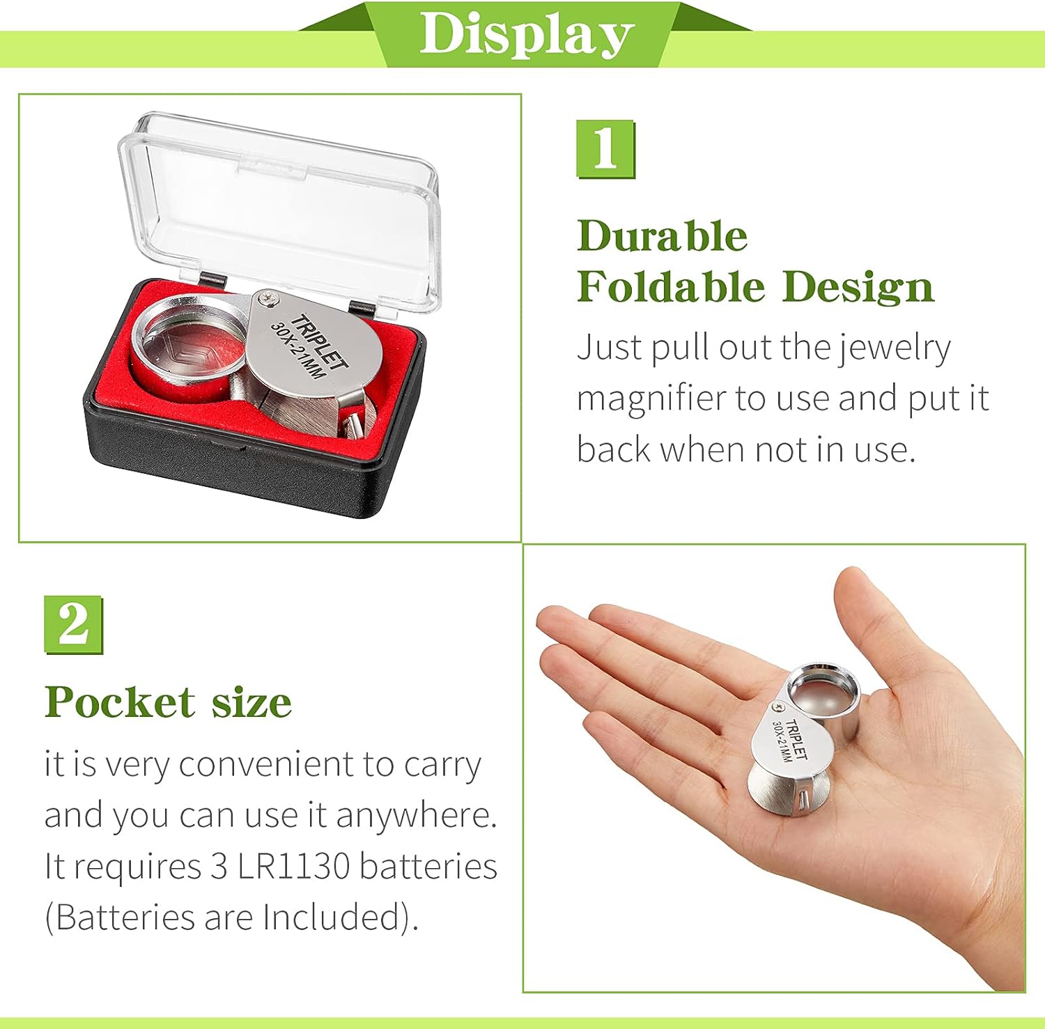 , Arts, Crafts & Sewing > Beading & Jewelry Making > Jewelry Making Tools & Accessories > Loupes, #Pieces #Illuminated #Jewelry #Loop #Magnifier #10X #30X #40X #Magnifier #Loupe #Jewelers..,
