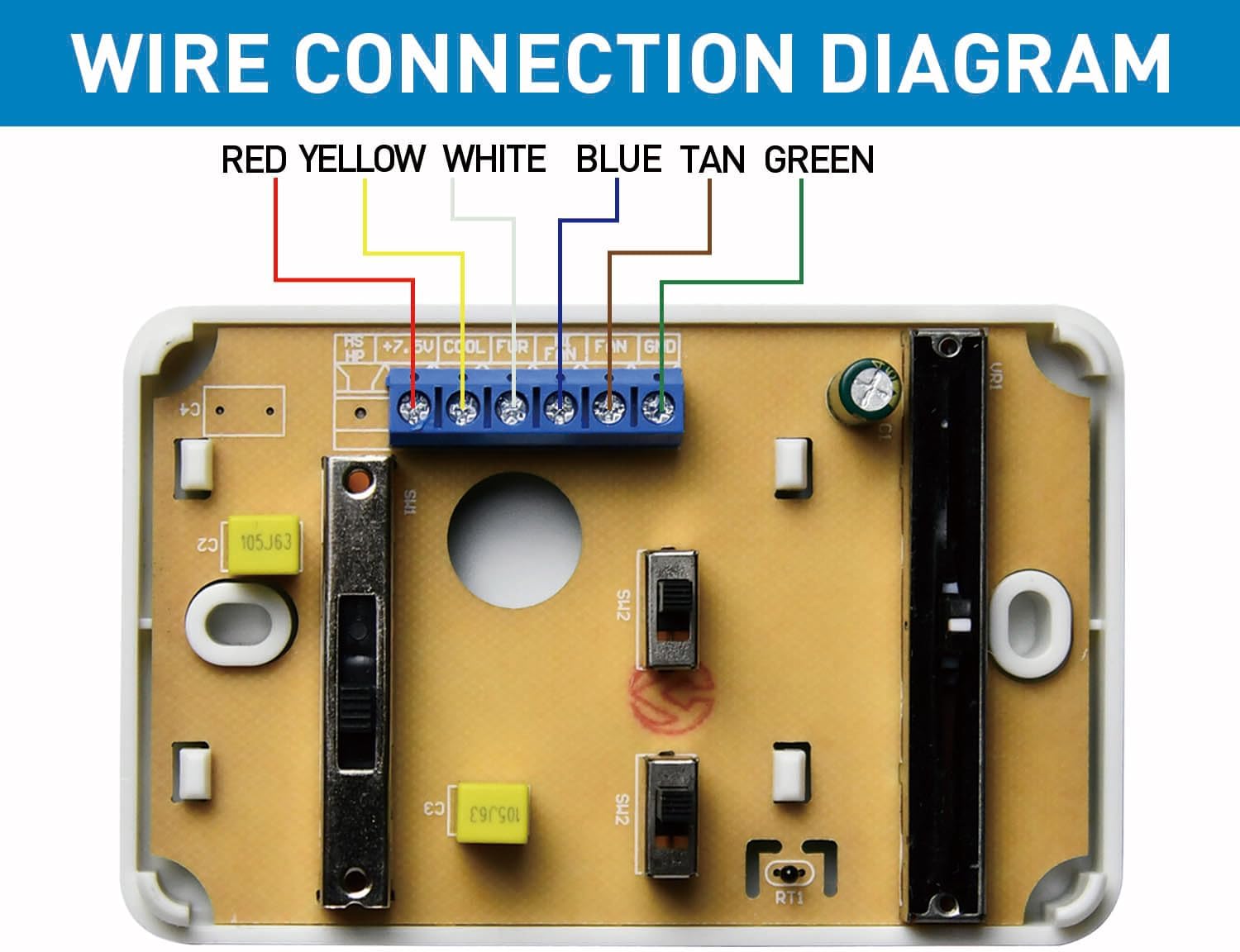 【FUNCTIONS】 RV thermostat control for COOL/FURNACE/FAN/OFF. When the FAN is turned on, it will continue to run to allow air to circulate.