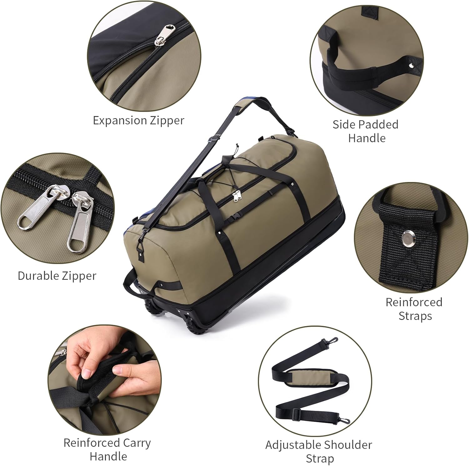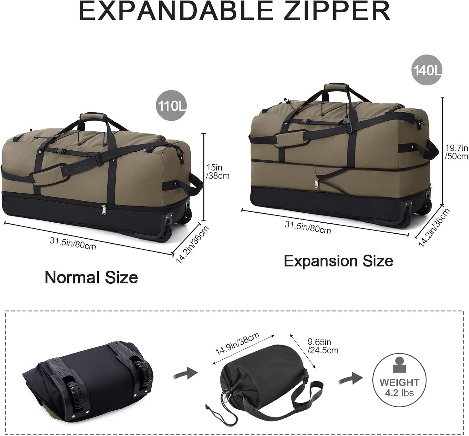 32” Foldable Duffel Bag with 2 Wheels,110L 140L Expandable R…