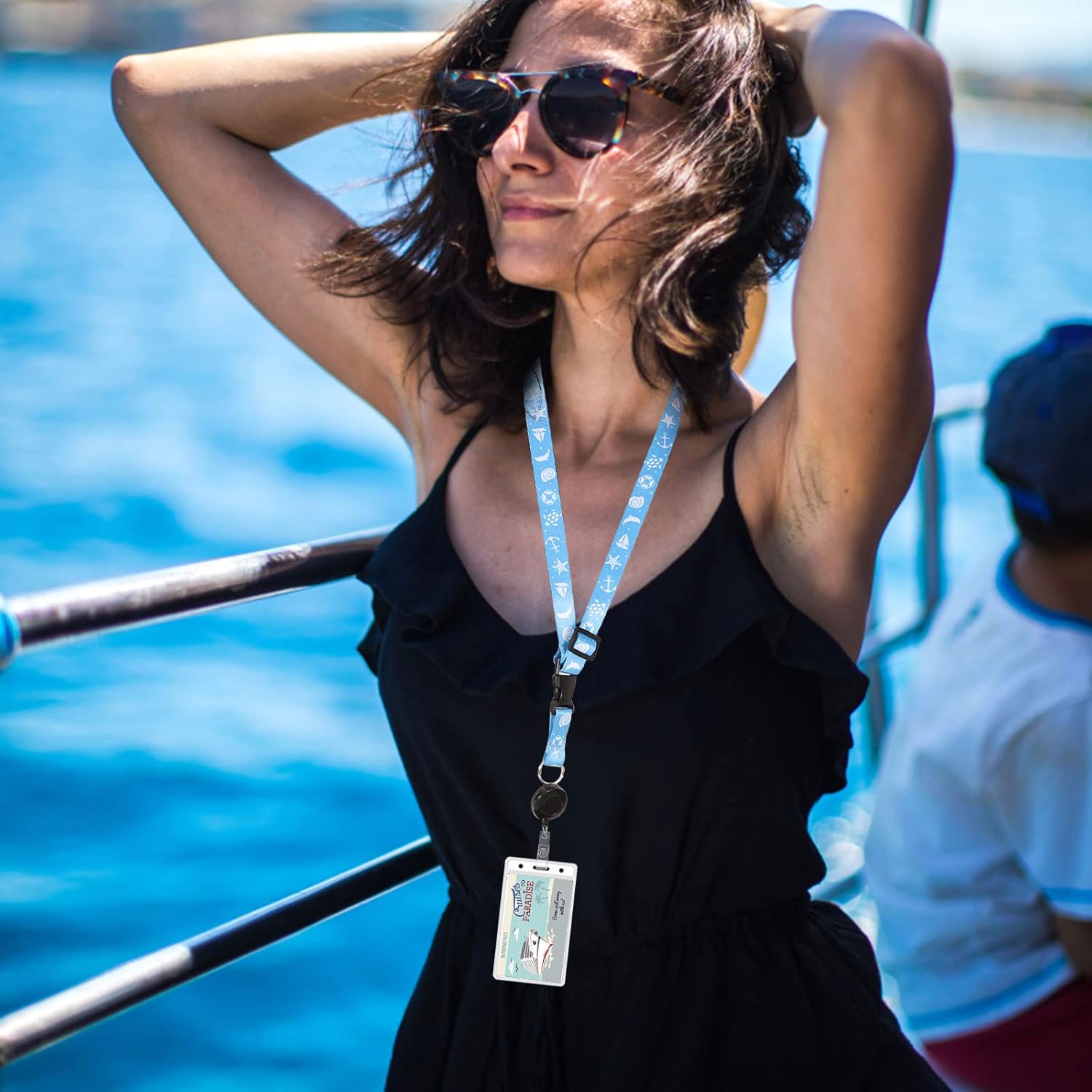 Adjustable: Cruise ship lanyard has a length adjustment buckle, you can adjust the length of cruise lanyard according to your height and habits; the retractable badge reel can be stretched to 25.3 inch, so you can easily scan your ID card without getting close to the scanner
