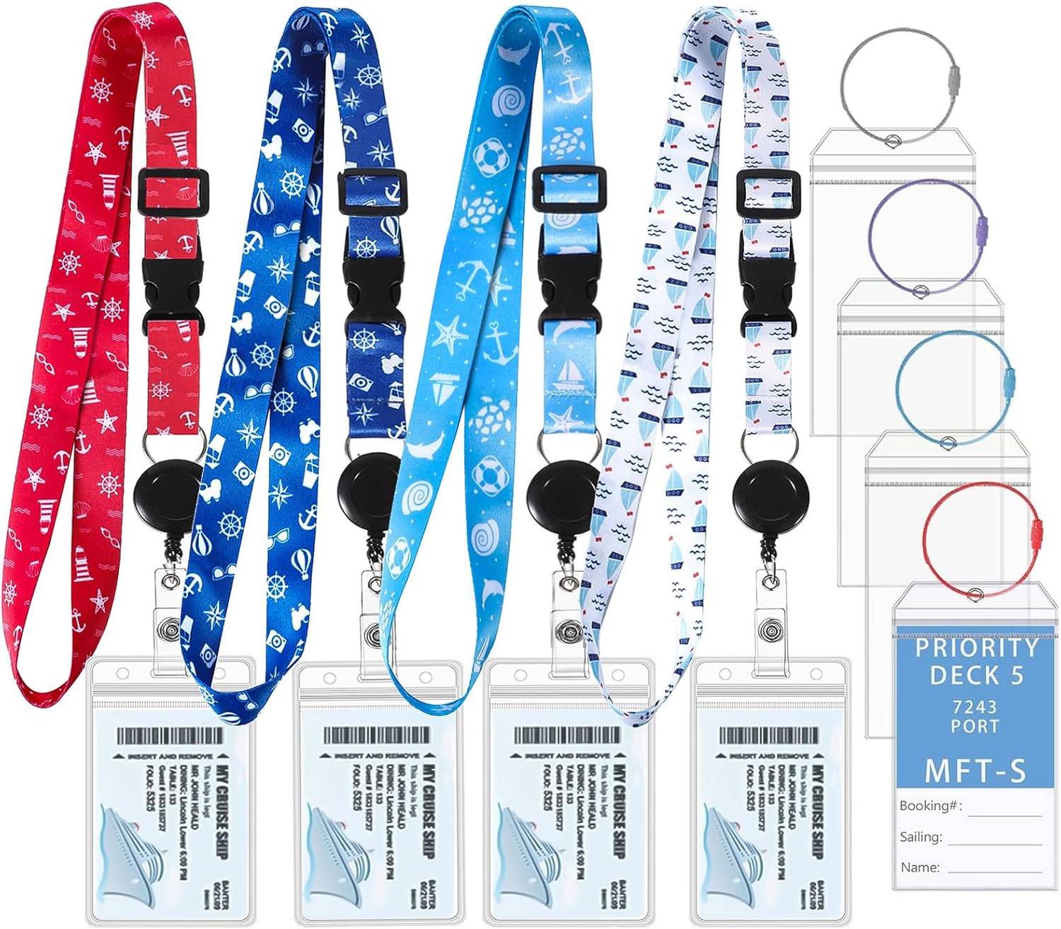 4 Pack Cruise Lanyard for Cruise Ship Cards, Retractable Lan…