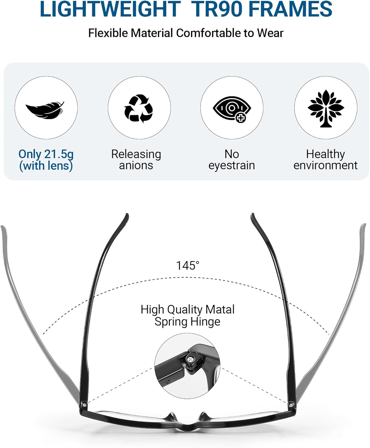 Review: Nice glasses. They are lightweight and comfortable. The lenses are easy to clean. Recommend if you want a pair of glasses at several areas of your home.