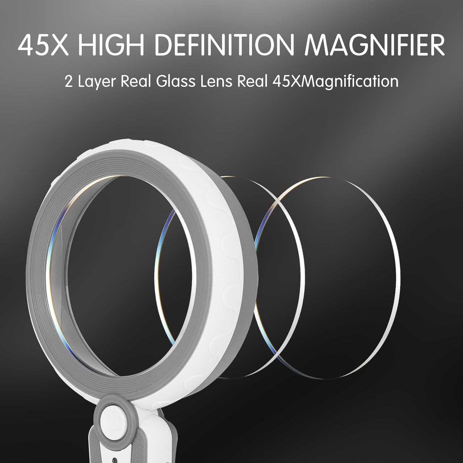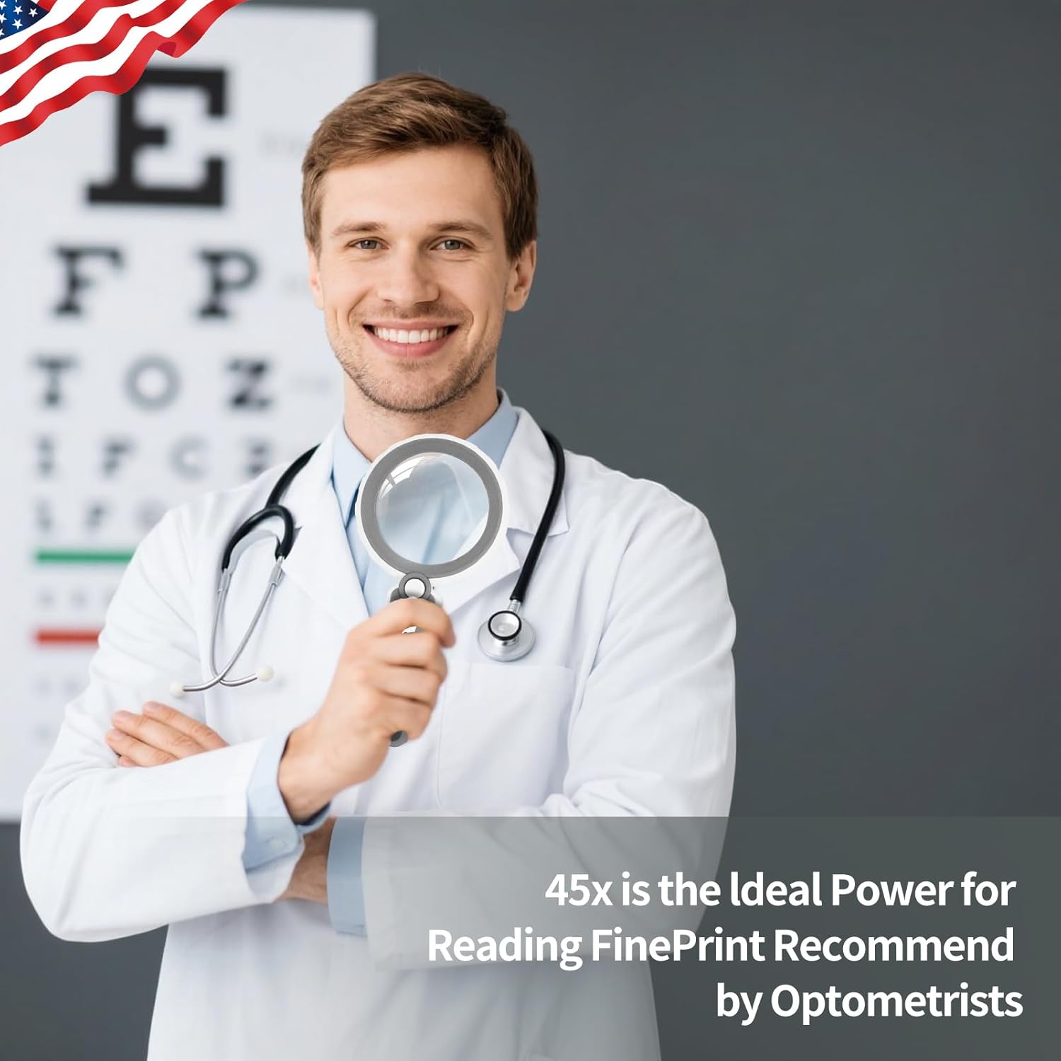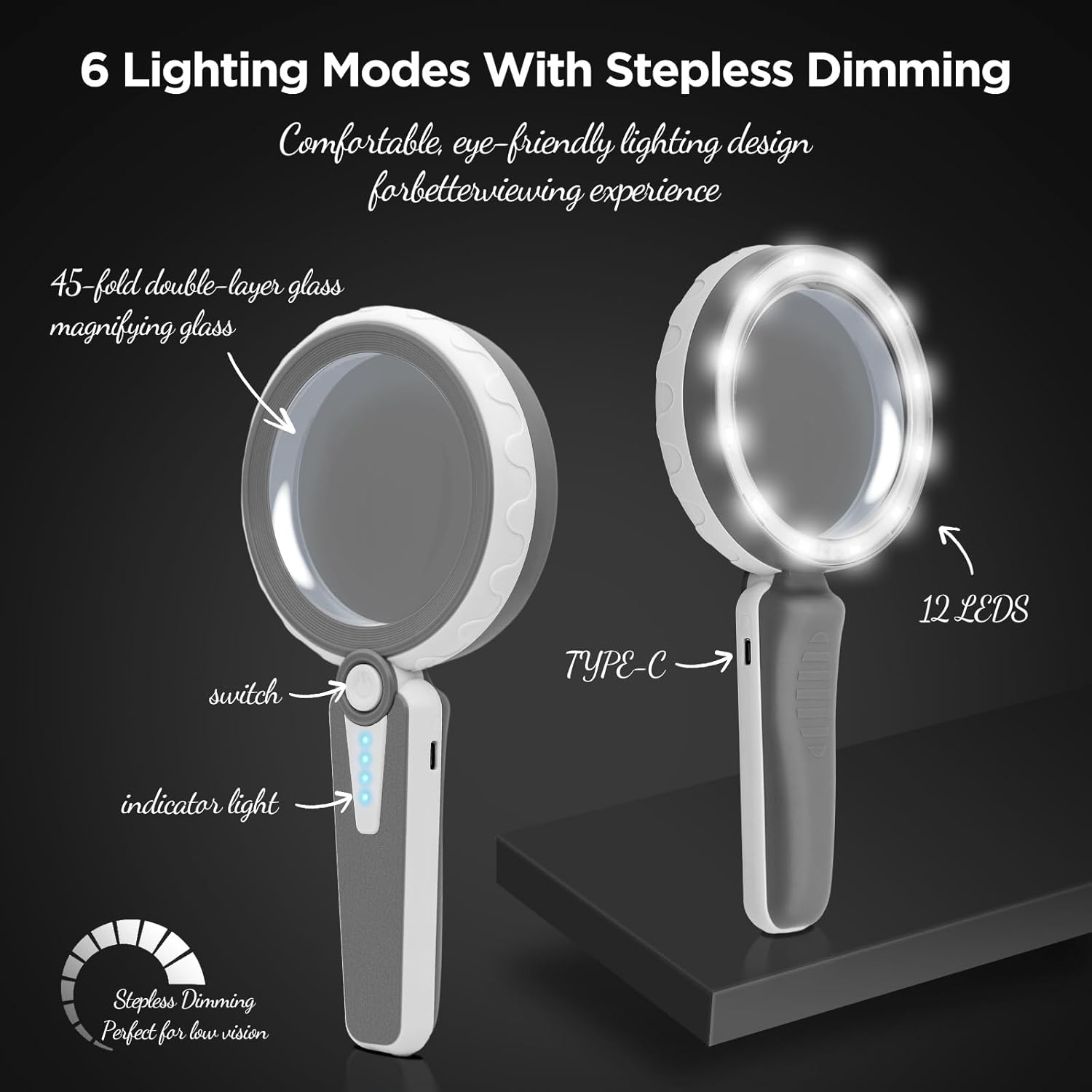 , Health & Household > Medical Supplies & Equipment > Mobility & Daily Living Aids > Visual Impairment Aids > Magnifiers, #45X #Magnifying #Glass #Light #Reading #Large #Rechargeable #LED #Magnif..,