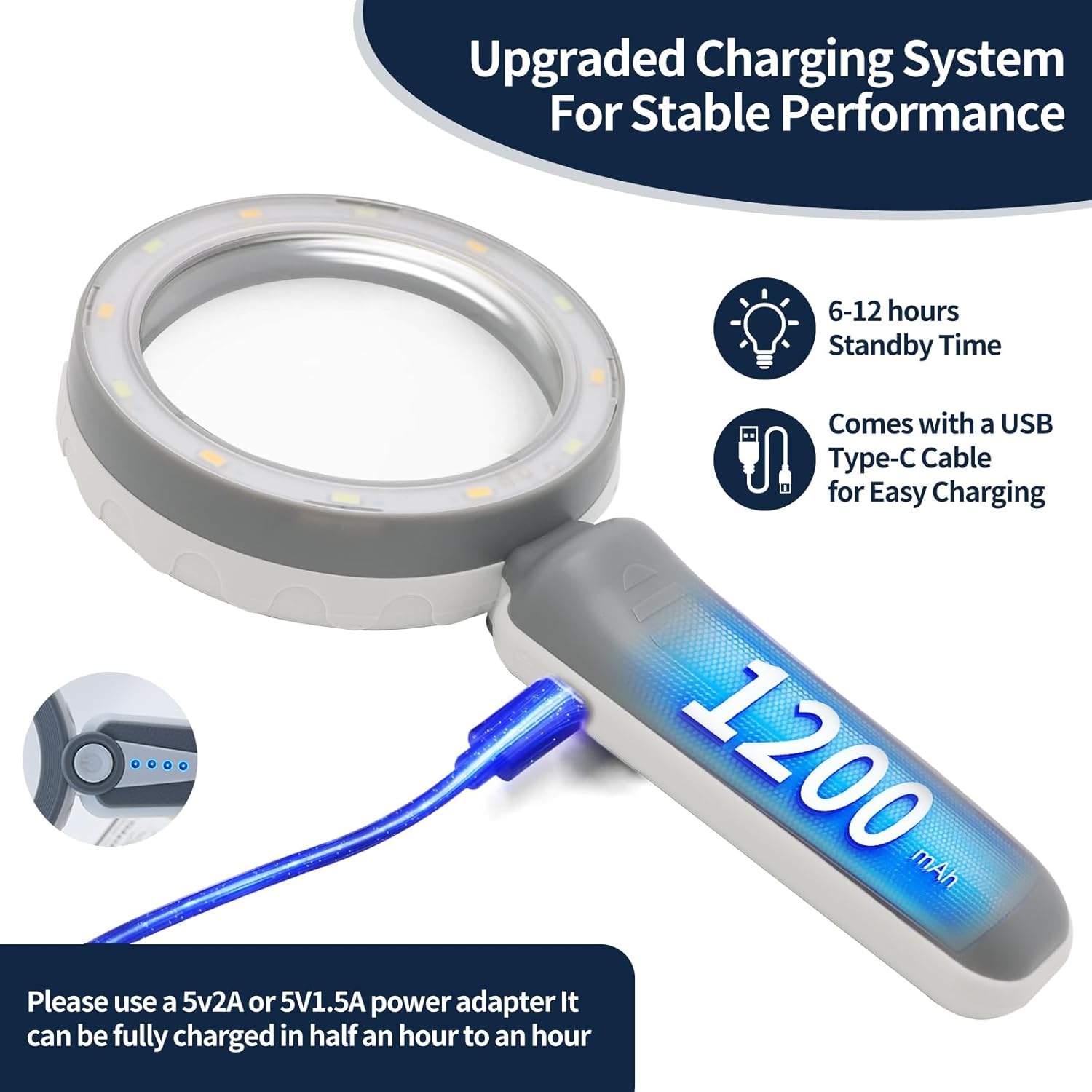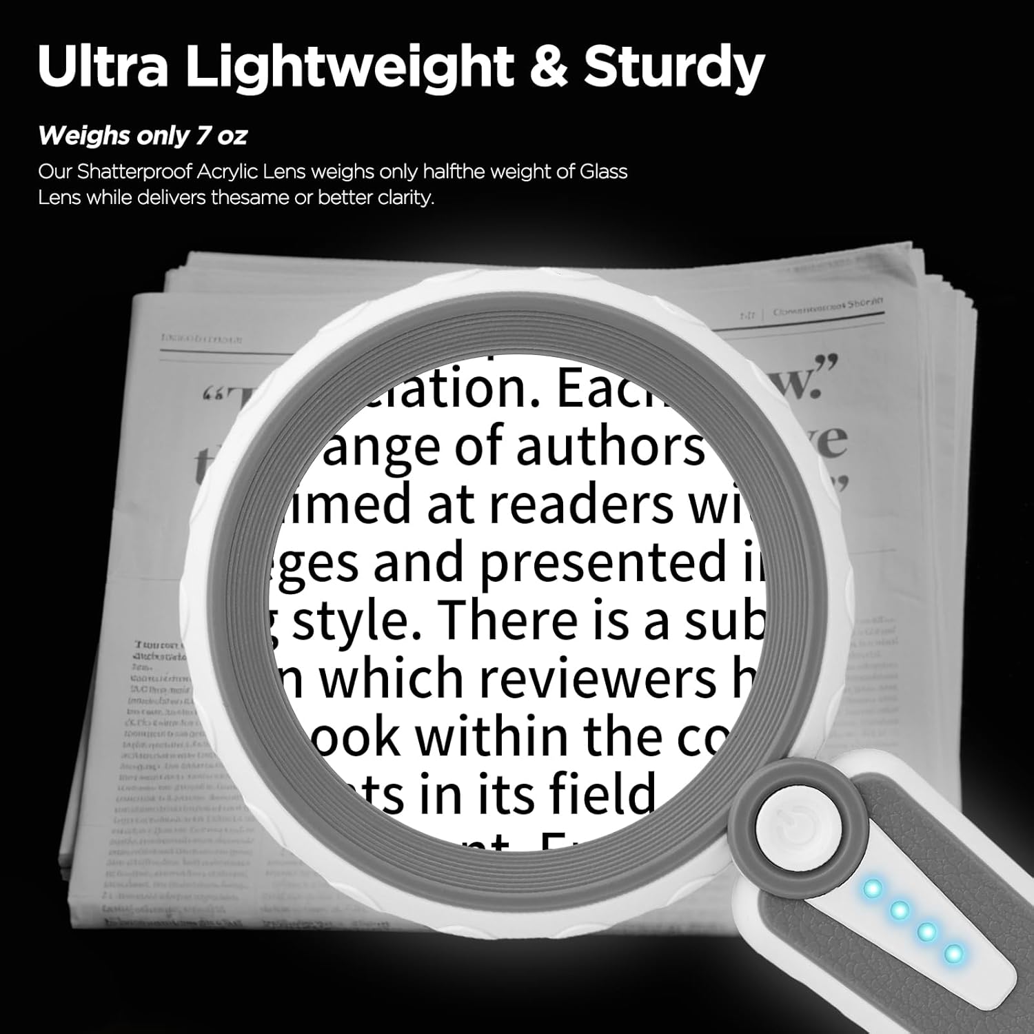Review: Excellent Glass to help read the fine print. I especially like the different colored lights which makes things even more clear to read.