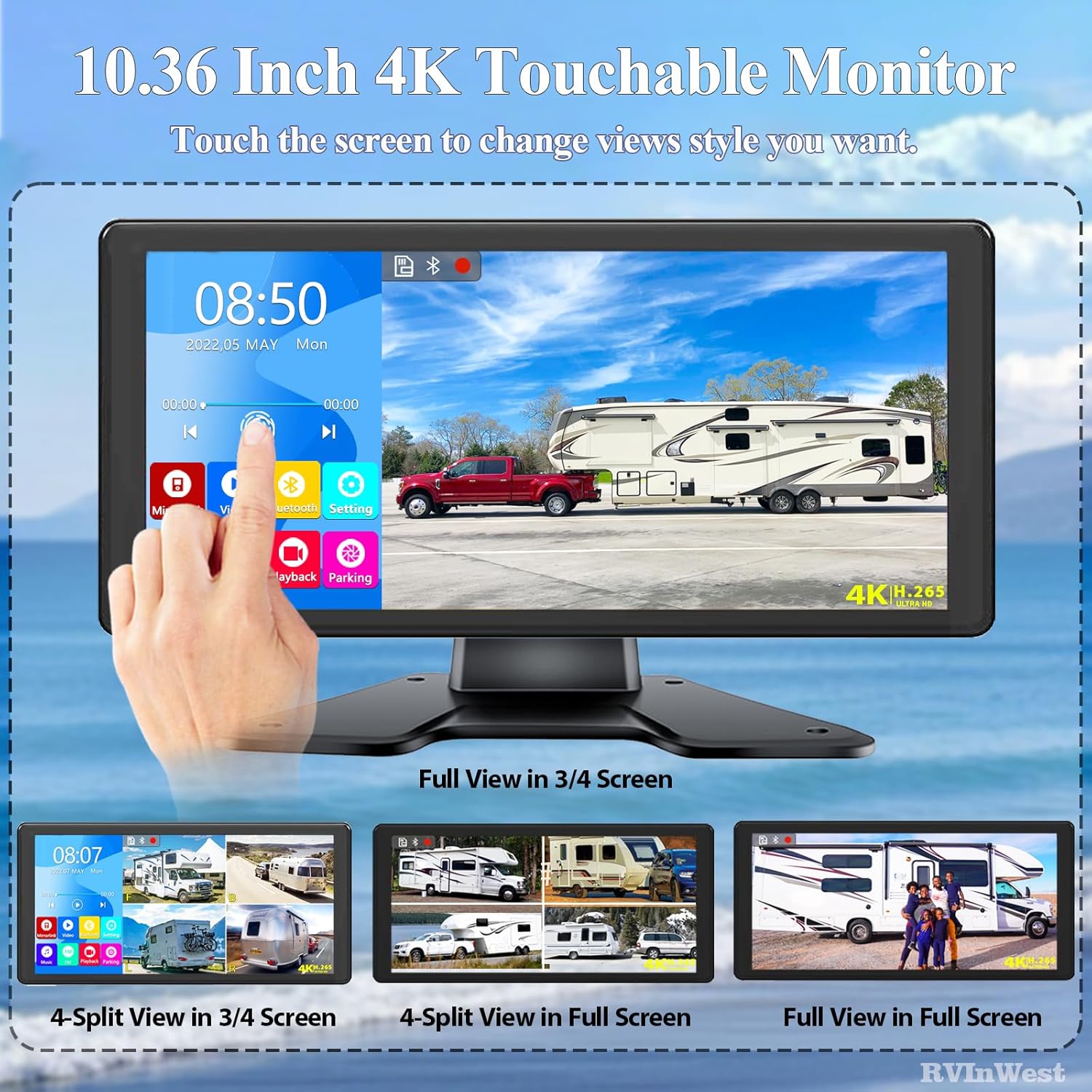 10.36 Inch 4K Touch Screen Camera System for Car RV Truck Trailer