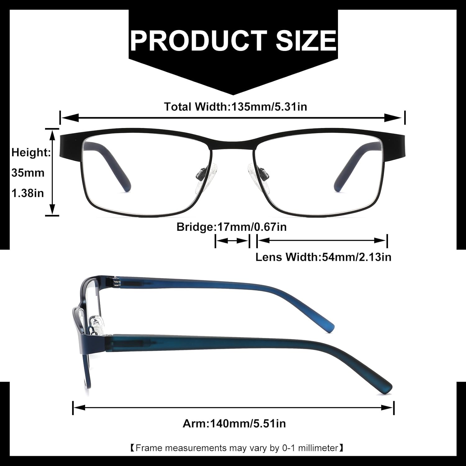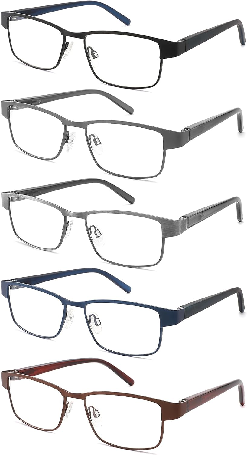 , Health & Household > Vision > Reading Glasses, #Pack #Reading #Glasses #MenBlue #Light #Filtering #Metal #Full #Frame #Spring #Hing..,