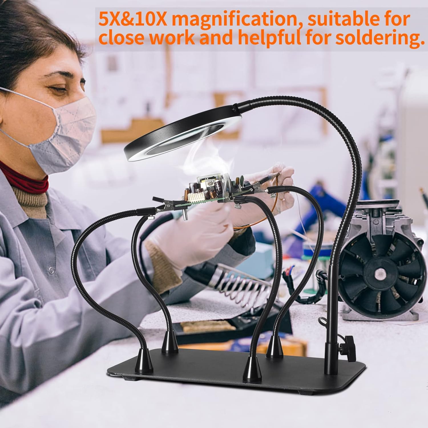 , Tools & Home Improvement > Welding & Soldering > Soldering & Brazing Equipment > Soldering Stations, #5X10X #Magnifying #Glass #Light #Stand #Flexible #Magnetic #Helping #Hand #La..,
