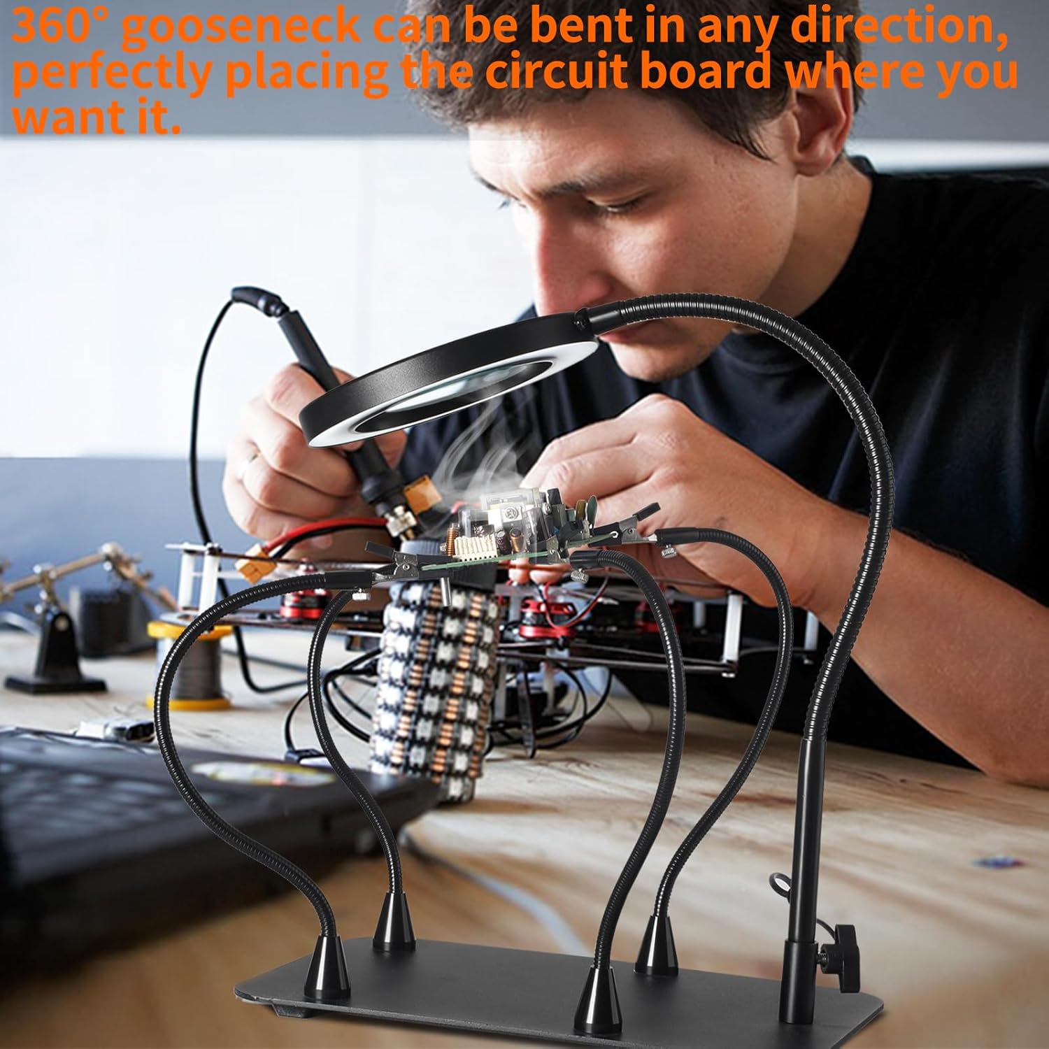 Review: I bought this set a few months back, but didn’t have as much space as I needed to fully use it. Now I have an area that I’m dedicating to soldering, and I absolutely love how helpful this is. The light stays exactly where I need it, and it’s small enough to fit on my table without interfering with the rest of the setup. The metal base feels very sturdy and probably could be used to stop a bullet. It costs less than a hundred dollars, but I’ll probably be able to use it for a very long time. The first time I put it together, it took me about 10 minutes to get everything assembled. If you are looking for something that will hold up to everyday use, this is exactly what you want. It’s also very easy to use, and works perfectly. I wish I had bought this when I first decided to get into soldering and not bought a cheap version.
