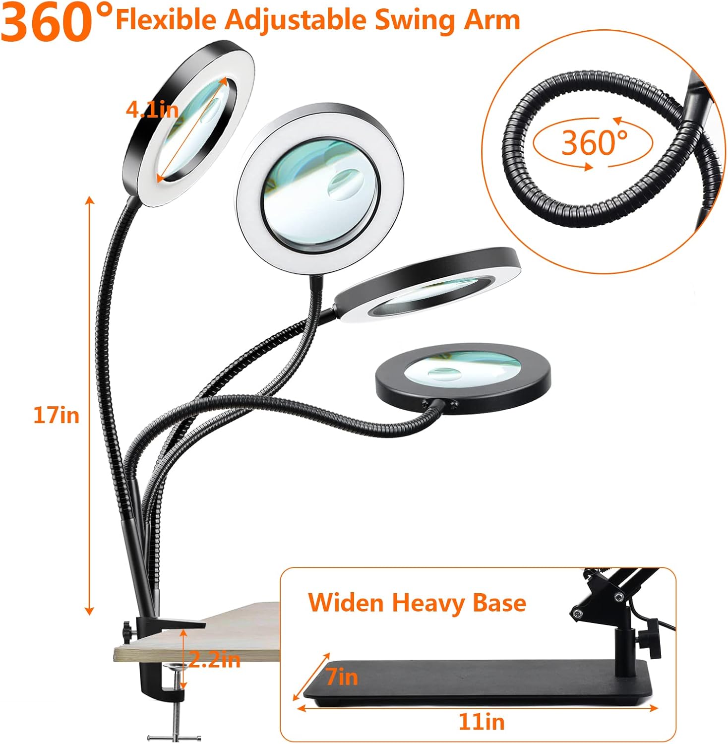 Review: It works pretty well. The only problem I have with it is the arms move slightly when you let go of them. This makes it hard to set small parts precisely so you’ll find yourself trying to compensate so it moves into the position you actually wanted. It’s still new so it could go away after using it more. The good thing is you can get magnetic arms from different companies so I could look for better replacements if it becomes that much of an issue. The USB adapter that came with it also got pretty hot when I first used it. It felt really light and cheap so I tried one that seemed higher quality and the problem went away. Just something to look out for.On a positive note, the base is thick and heavy so it won’t fall over like some of the other smaller and cheaper ones on here. The only time that might happen is if you don’t clamp it down and try to move the magnifying glass too quickly.
