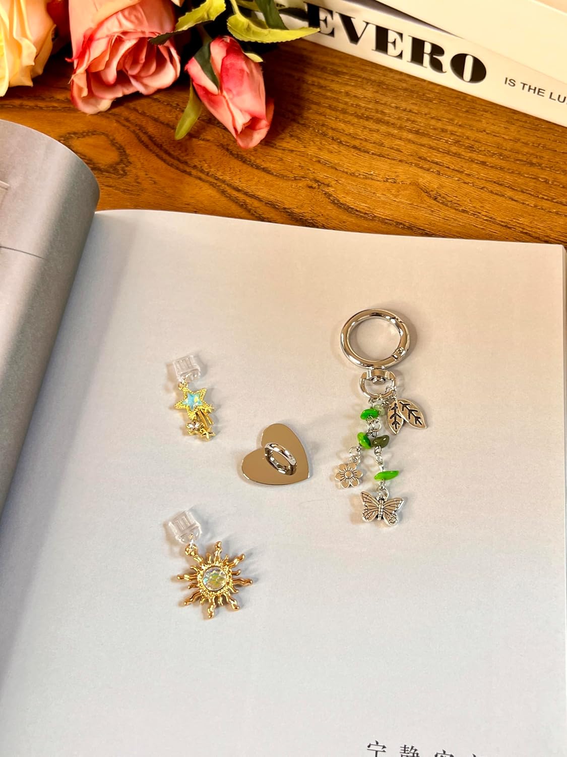 Review: These are beautiful. They are on a cardstock type paper so they won’t tear. They fit in my clear case for my kindle paperwhite signature edition and the dust charms are cute! It came with another charm but I personally don’t want to use it on my kindle but overall for everything you get it’s a great deal!
