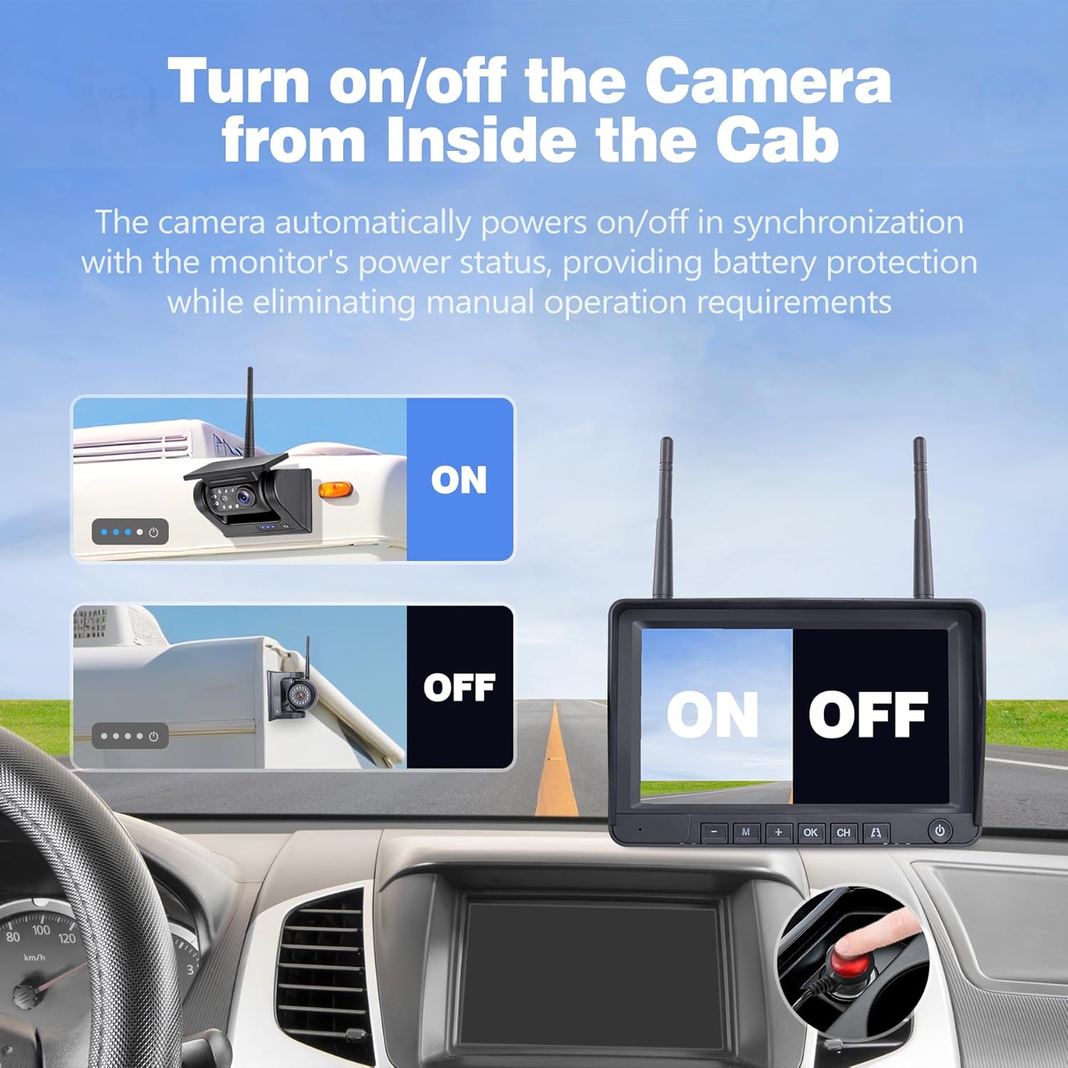 【Lag-Free 2.4GHz Wireless Connection】 Experience uninterrupted real-time monitoring through our enhanced 2.4GHz dual-antenna system, ensuring crystal-clear video transmission with zero latency. The extended 330-foot open-range coverage performs reliably even at highway speeds (102 mph), making it ideal for various applications: from passenger cars and SUVs to commercial vehicles like trucks, RVs, trailers, and marine equipment.