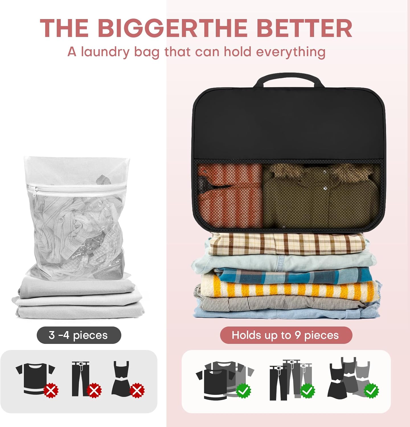 Exquisite Workmanship: The top visible mesh design is not only transparent and breathable but also saves you time when searching for clothes. The fixed buckles inside the packing cubes keep your clothes clean and neat. The strong handles make it easy to carry, or you can fold and put them in your bag or backpack.