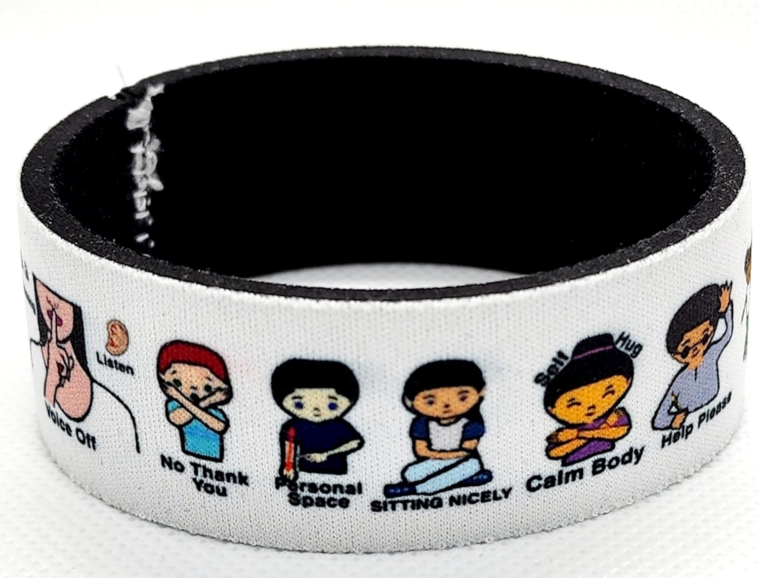 B0D3FSM9TT, The Therapeutic Communication Wristband (T-Band) is a visual aid that is used to assist people who are non-verbal and/or speech impaired. The item is based on pictorial communication. It is also a great way to utilize de-escalation, redirection, and positive reinforcement. The T-Band wristband is excellent for enhancing the communication ability of someone who struggles with effective communication. The wristband is also a comfortable, durable, and convenient way to support a person’s communication endeavor.