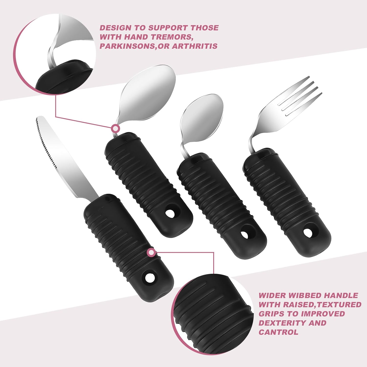 , Health & Household > Medical Supplies & Equipment > Mobility & Daily Living Aids > Eating & Drinking Aids > Utensils & Holders, #Adaptive #UtensilsEasy #Grip #SilverwareBuilt #Bendable #ForkTeaspoonTablespoo..,