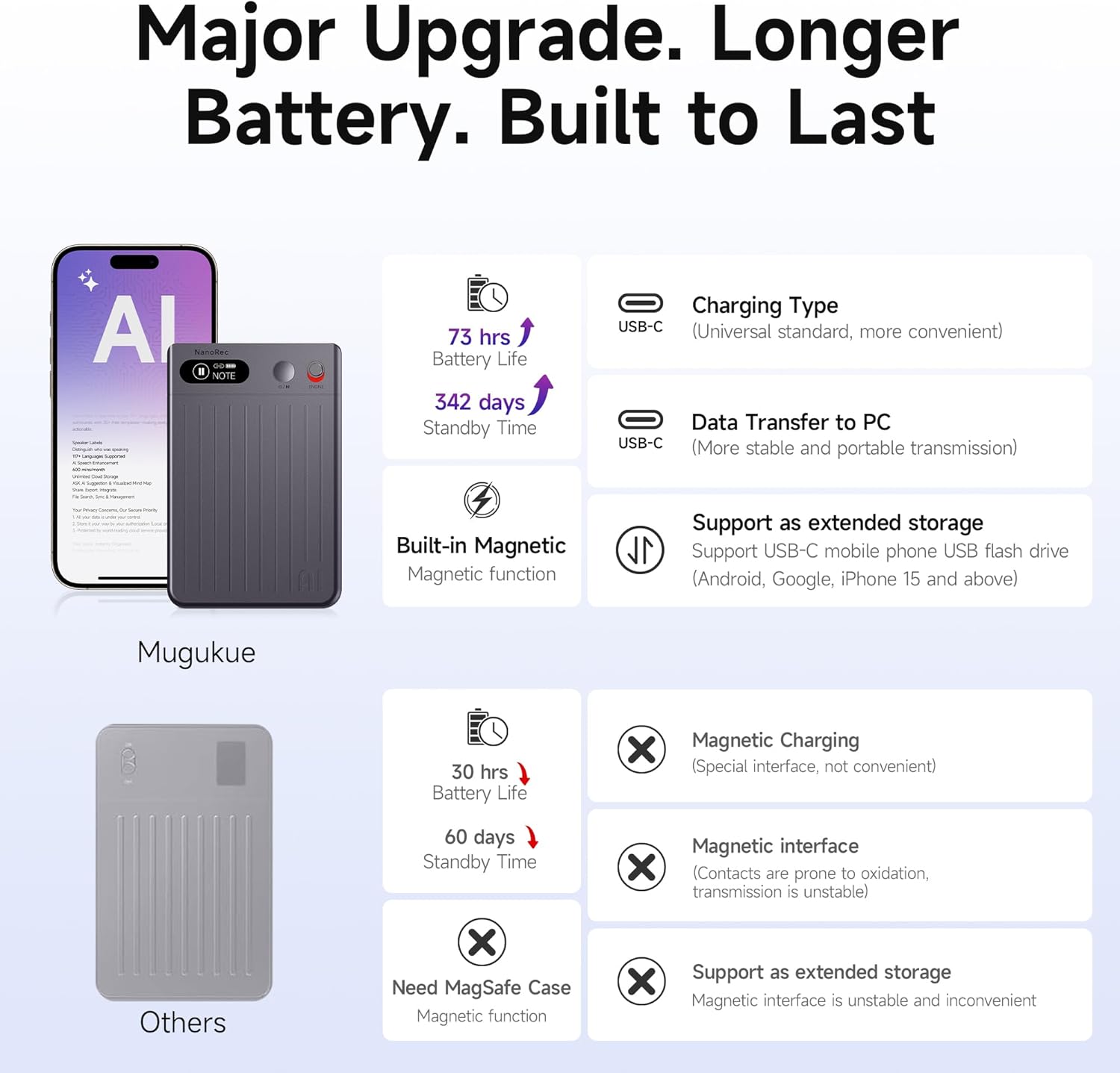 Review: This recorder really exceeded my expectations. The sound quality is clear and sharp, even in busy places, and the AI noise cancellation makes a big difference. I use it for meetings and lectures, and the transcription feature saves me a lot of time it recognizes multiple languages very accurately.The battery lasts for a long time, and the USB C fast charging is super convenient. It’s lightweight, easy to carry, and the magnetic clip is a nice bonus. Overall, it’s a smart and reliable recorder that’s perfect for both work and study.