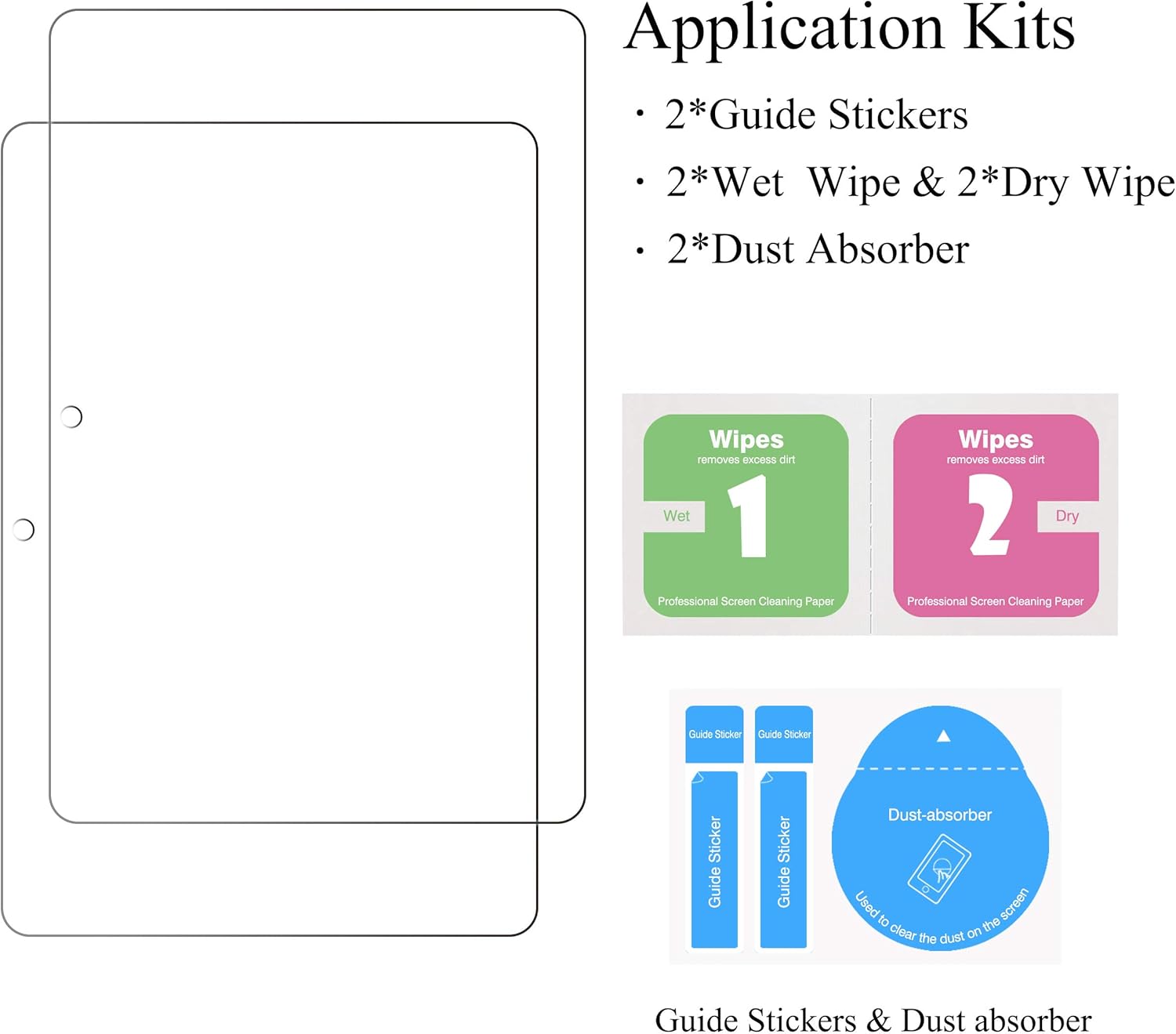 Review: Easy to install, used both for extra protection. Works well, protected my tablet from my destructive children, so good durability. No bubbles,easy to clean, good price for two pack, can’t tell they are on the screen, no glare either