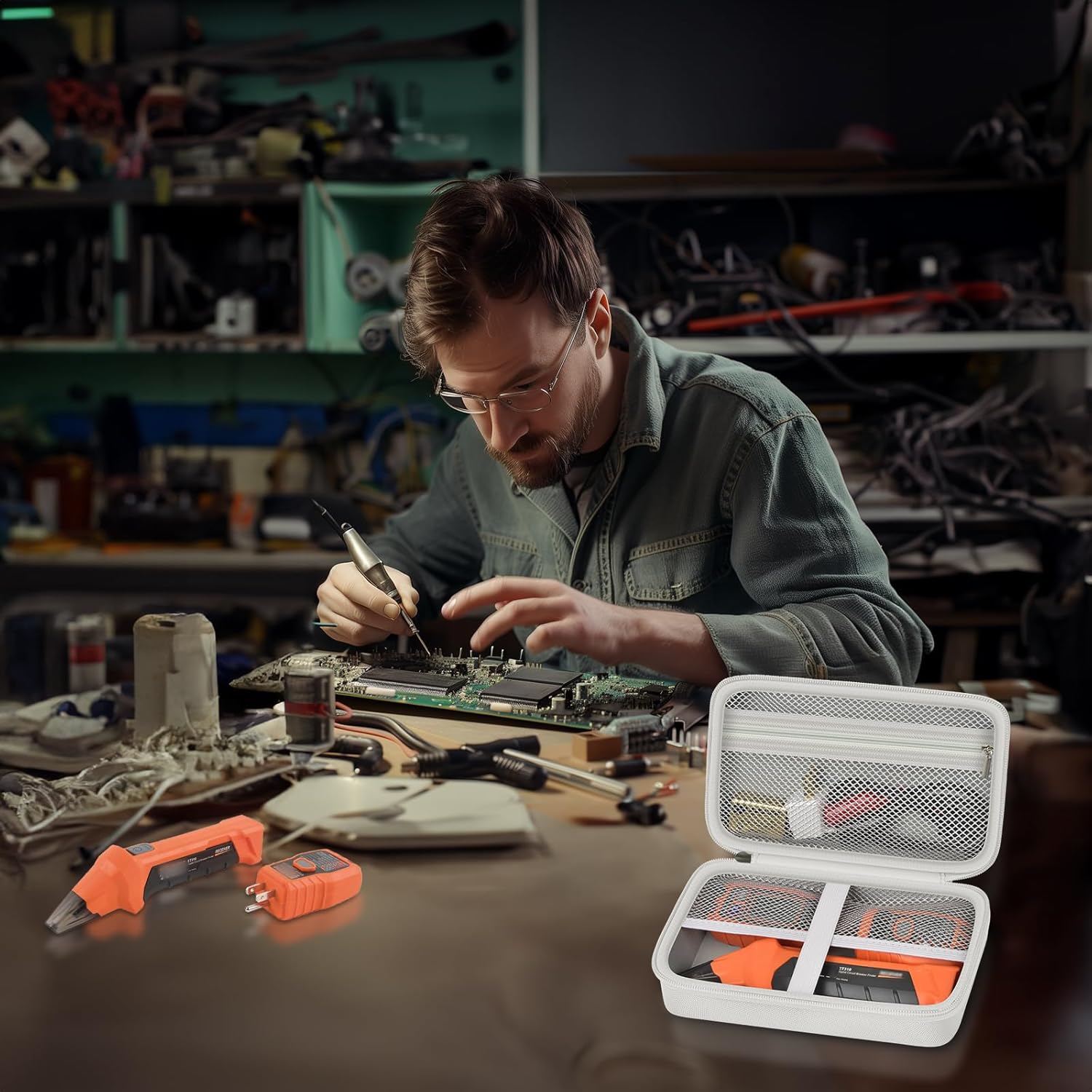 Reliable protection for your tools - Our GFCI tester storage container is made from high-quality EVA material, which is sturdy and provides excellent protection for your tester bag. The case is waterproof, shockproof, dustproof and anti-skid, ensuring your voltage tester is well-protected from bumps, scratches and dust.