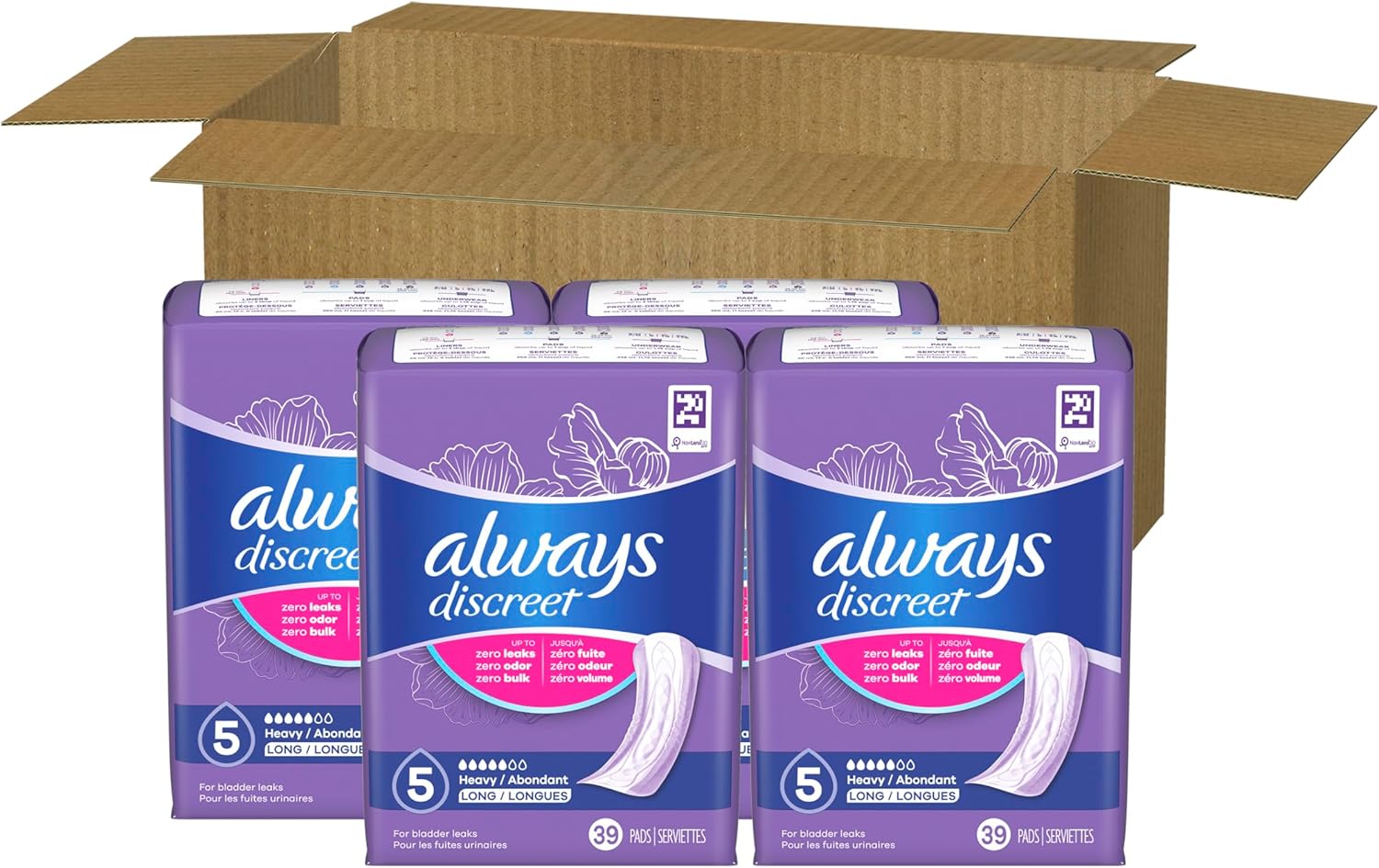 B0BZTMC31X, Looking for incredibly strong bladder leak protection that’s barely noticeable under clothes? Experience incredible bladder leak and postpartum incontinence protection in a surprisingly thin and discreet incontinence pad. Always Discreet Incontinence Pads for women provide the comfort you need with up to the 100% leak-free protection you deserve. Thanks to a unique absorbent core that keeps your skin dry by absorbing bladder leaks in seconds, you’ll be able to stay comfortable and feel fresh for hours. Walk with poise and confidence knowing two RapidDry layers form a boosted…, 4.5, , Health & Household > Health Care > Incontinence & Ostomy > Pads, Liners, Shields & Guards, #Discreet #Adult #Incontinence #Pads #Women #Heavy #Absorbency #Long #Length..,