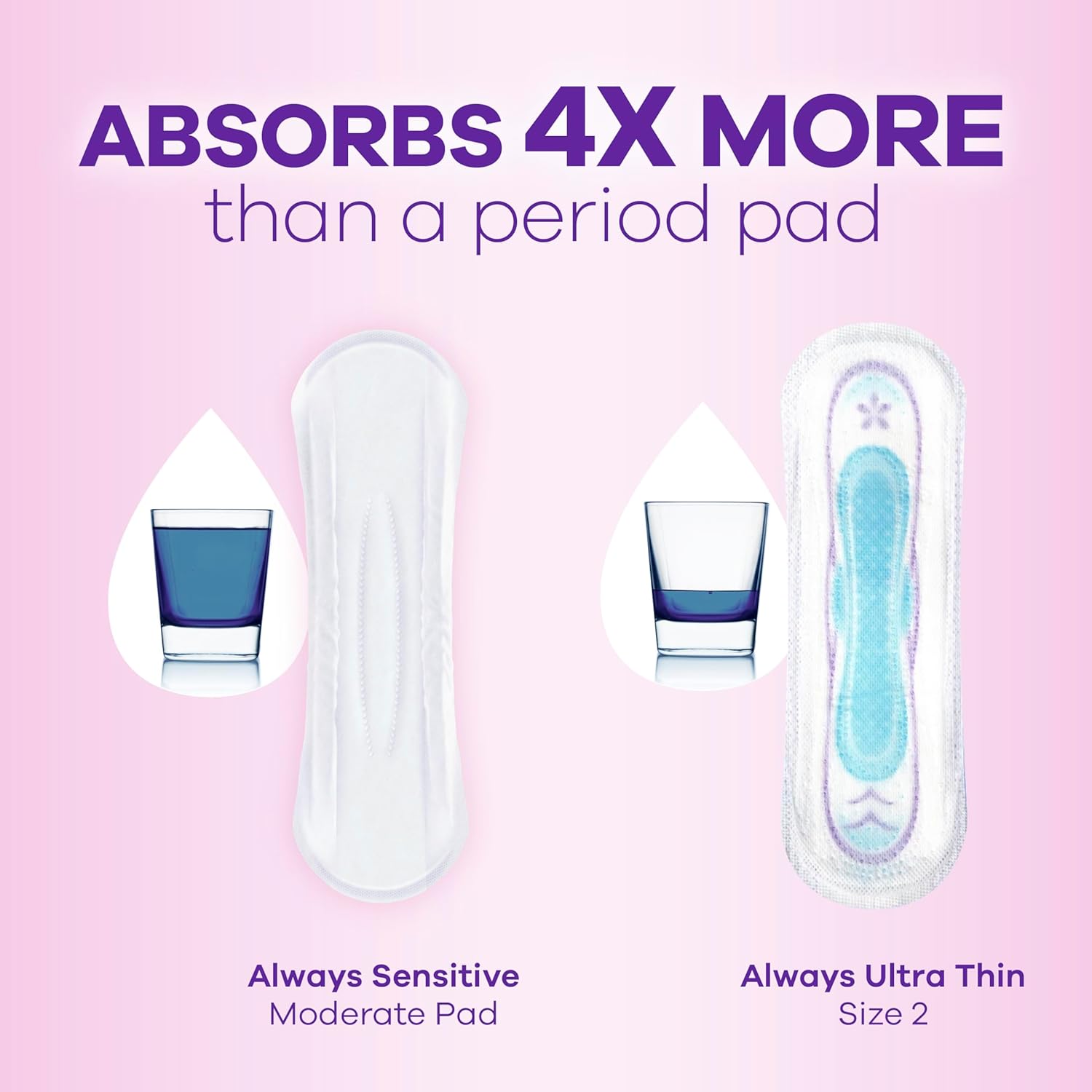 Review: These were perfect. I was so worried due to some reviews but I decided to try them since we are all different. Some people might want them to absorb a lot but maybe they might need thicker or longer which to me these are thin but still absorb when I sneeze or cough which is not a cup of water that I pee 😆 so i seen someone put a cup of water so that made me decide to try them and I I’m glad I did. They don’t smell and the adhesive is just fine which are the same as the other always brand. These are all white so that is the only difference I see and for the value for money is perfect. Plus it has more than the regular always (4) brand. These will be my kind from now on…