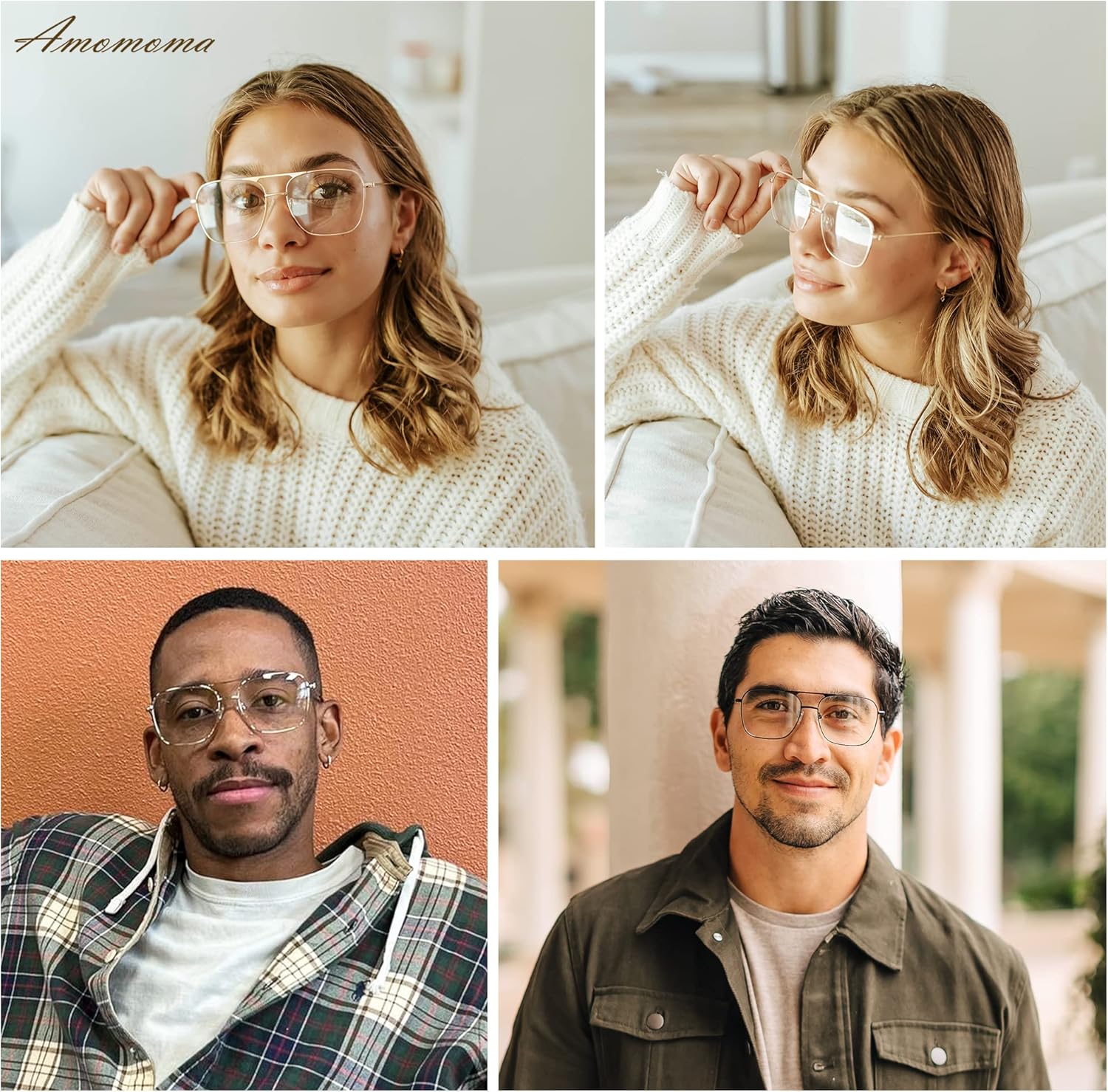 Review: I’ve been there—pulling papers away from my face just to make the text readable. But with these AMOMOMA Retro Reading Glasses, that’s a thing of the past! The 1.50 or 2.00 magnification is spot on, so no more squinting or awkwardly stretching out the paper just to see the words.I also refuse to adjust the text size on my devices (I know, I know—it’d be way easier), and these glasses have been a total lifesaver. No more zooming in or squinting at tiny screens!The aviator style is so stylish, and they’re surprisingly comfortable. The double nose bridge, slim temple arms, and adjustable nose pads make them fit perfectly without any pressure or pinching, even after hours of wear. Plus, they’re super lightweight.I like the blue light-blocking lenses—they’ve saved my eyes from the usual strain after staring at screens all day. Whether I’m reading, emailing, or scrolling, I can do it all without discomfort. They even come with a beautiful golden pouch and a cleaning cloth, so I can keep them looking fresh!