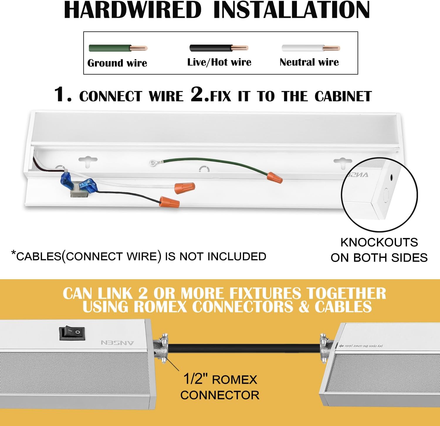 , Tools & Home Improvement > Lighting & Ceiling Fans > Wall Lights > Under-Cabinet Lights, #Ansen #Hardwired #Cabinet #Lighting #18inch #15W #LED #Light #KitchenCloset..,