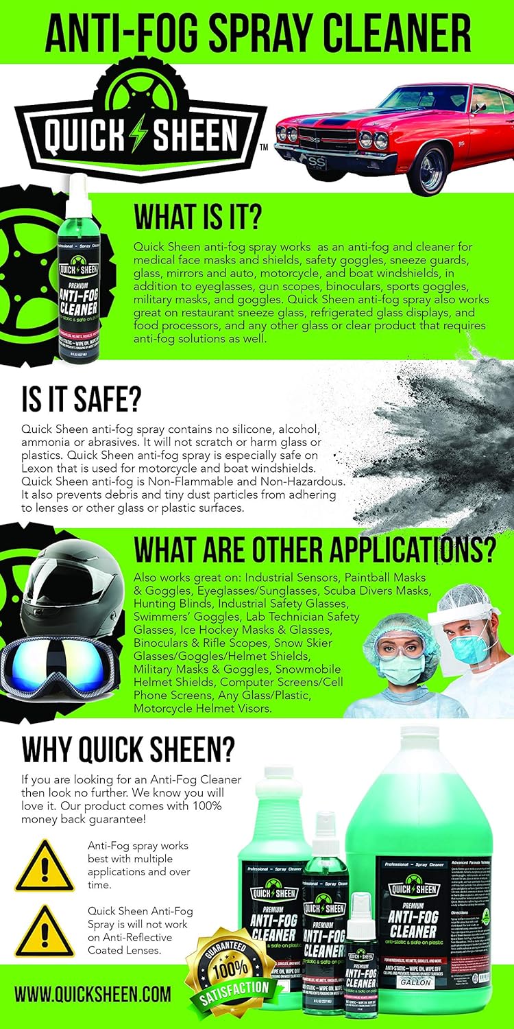 Review: I used this product to keep the windshield of my car clear of dust. After cleaning up the windshield, I applied the spray every few days to test the products claims. The manufacturer’s claims about the product hold up. My windshield looked fantastic, and the spray has lasted me a couple of weeks. If you’re looking for an anti-fog cleaner for a windshield, your glasses, mirrors, or some similar product, I would recommend buying this product. It is worth the purchase!