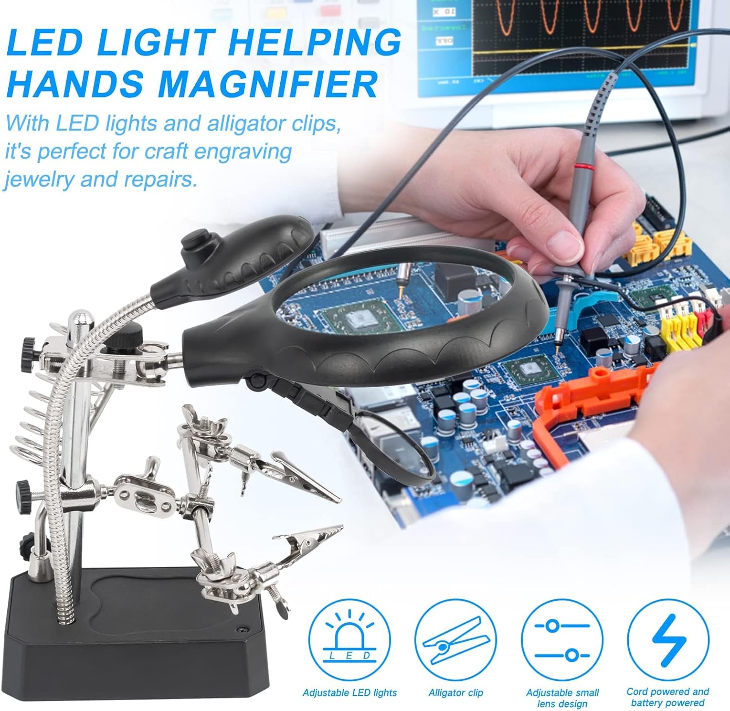 , Health & Household > Medical Supplies & Equipment > Mobility & Daily Living Aids > Visual Impairment Aids > Magnifiers, #AORAEM #LED #Light #Helping #Hands #Magnifier #Station2.5X #7.5X #10X #Magnifying #Glass,